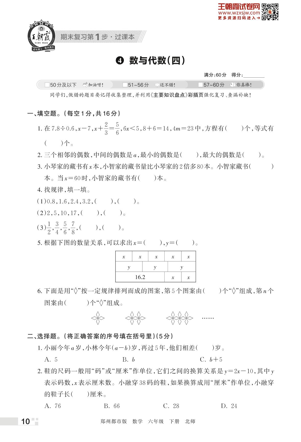 王朝霞期末过课本——4 数与代数(四)六年级下册数学(北师版)