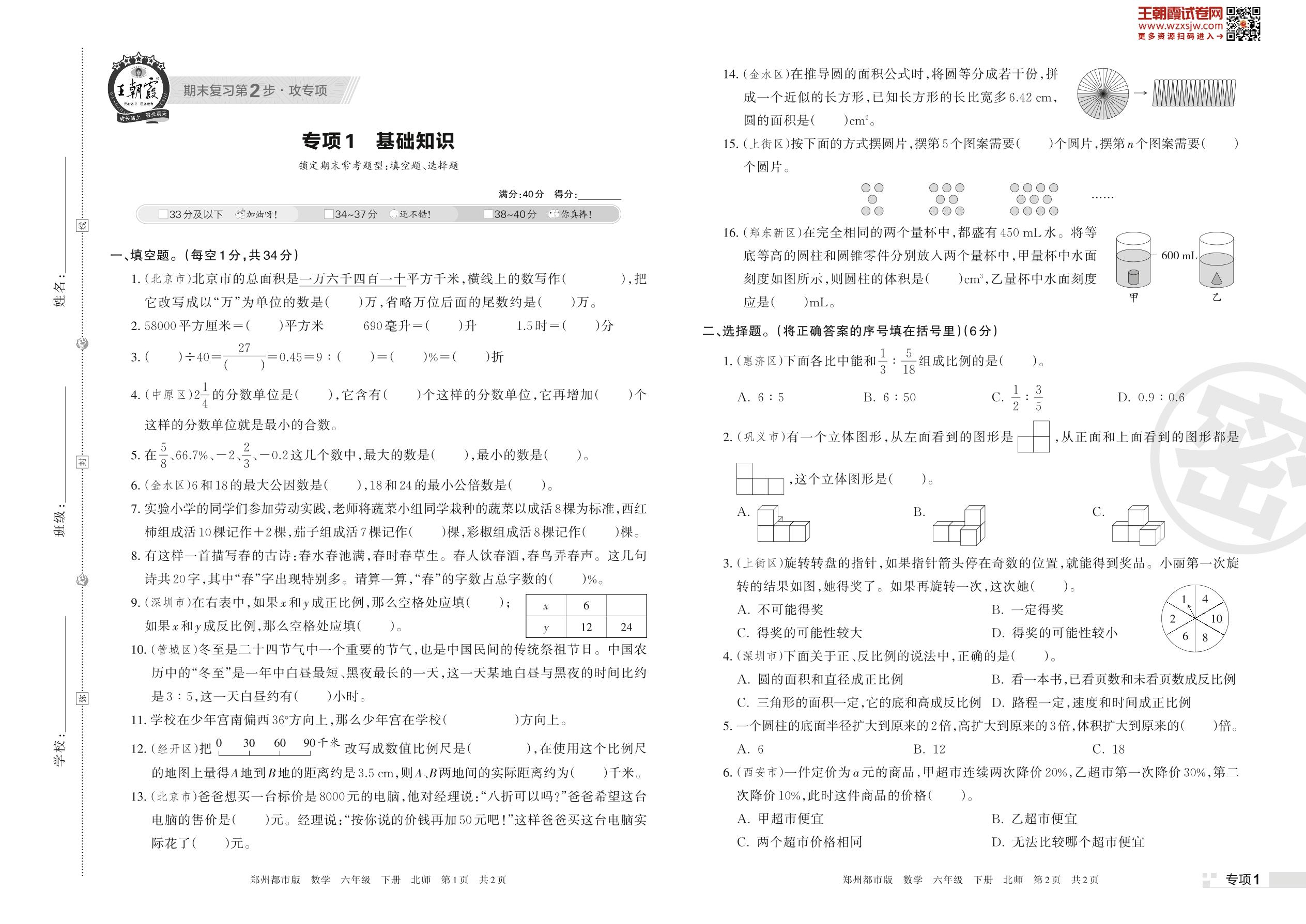 王朝霞期末专项卷——基础知识六年级下册数学(北师版)_R230424175553474【1】