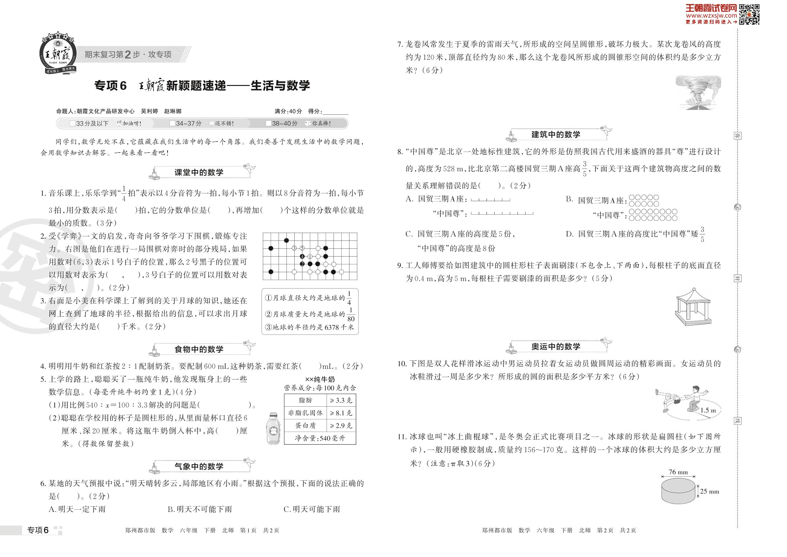 王朝霞期末专项卷——王朝霞新颖题速递:生活与数学六年级下册数学(北师版)【6】