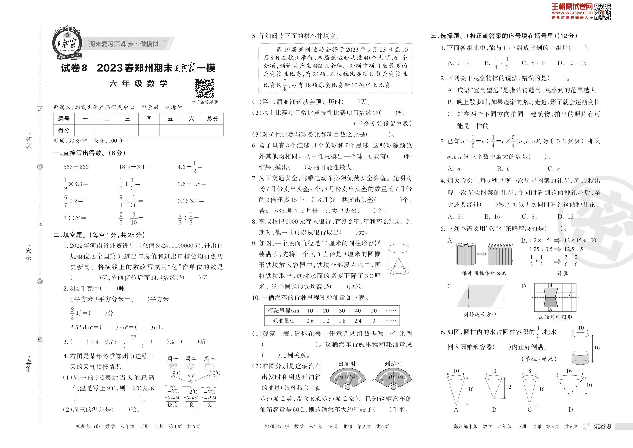 王朝霞期末模拟卷六年级下册数学(北师版)_R230424175554453【8】
