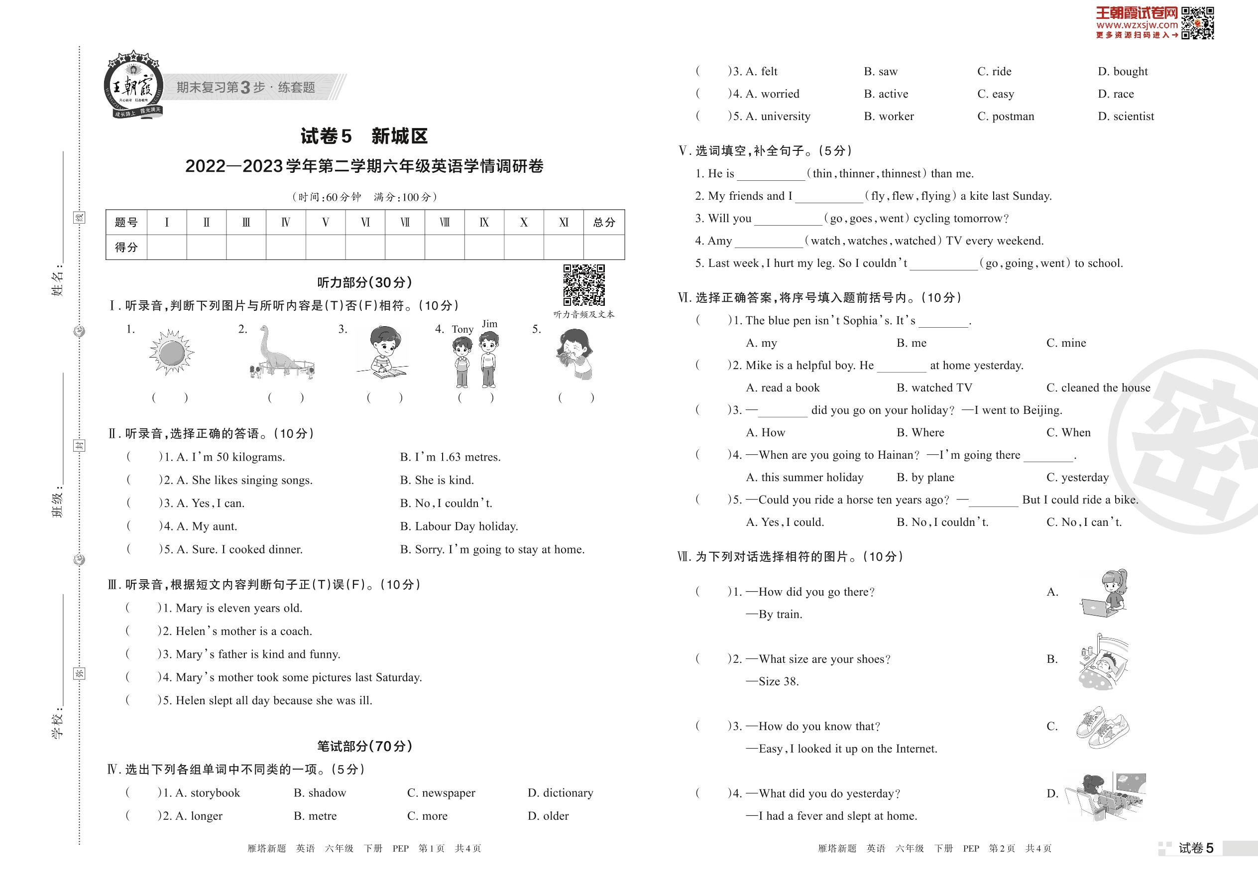 新城区2022—2023学年第二学期六年级英语学情调研卷(PEP版)【5】