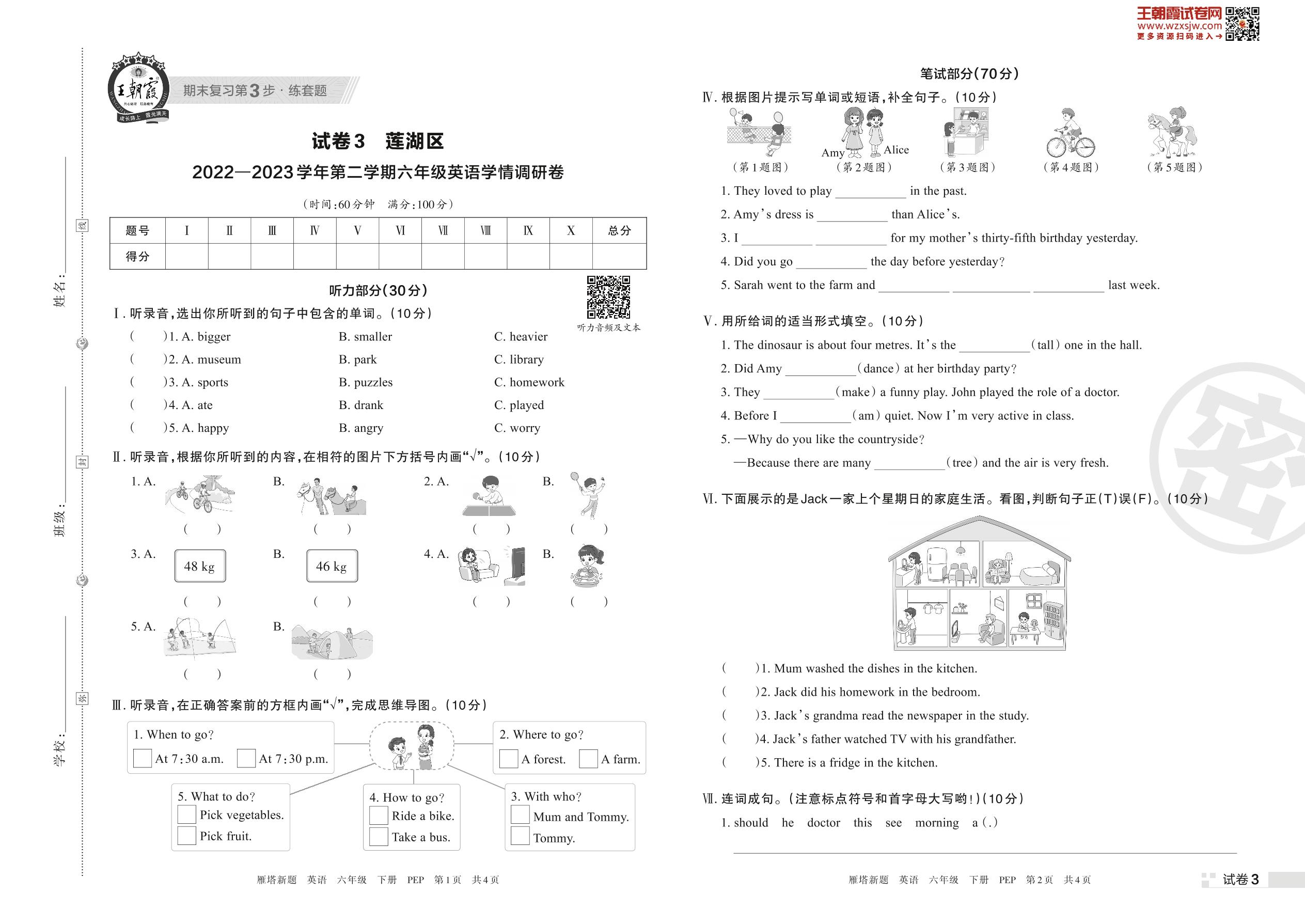 莲湖区2022—2023学年第二学期六年级英语学情调研卷(PEP版)【3】