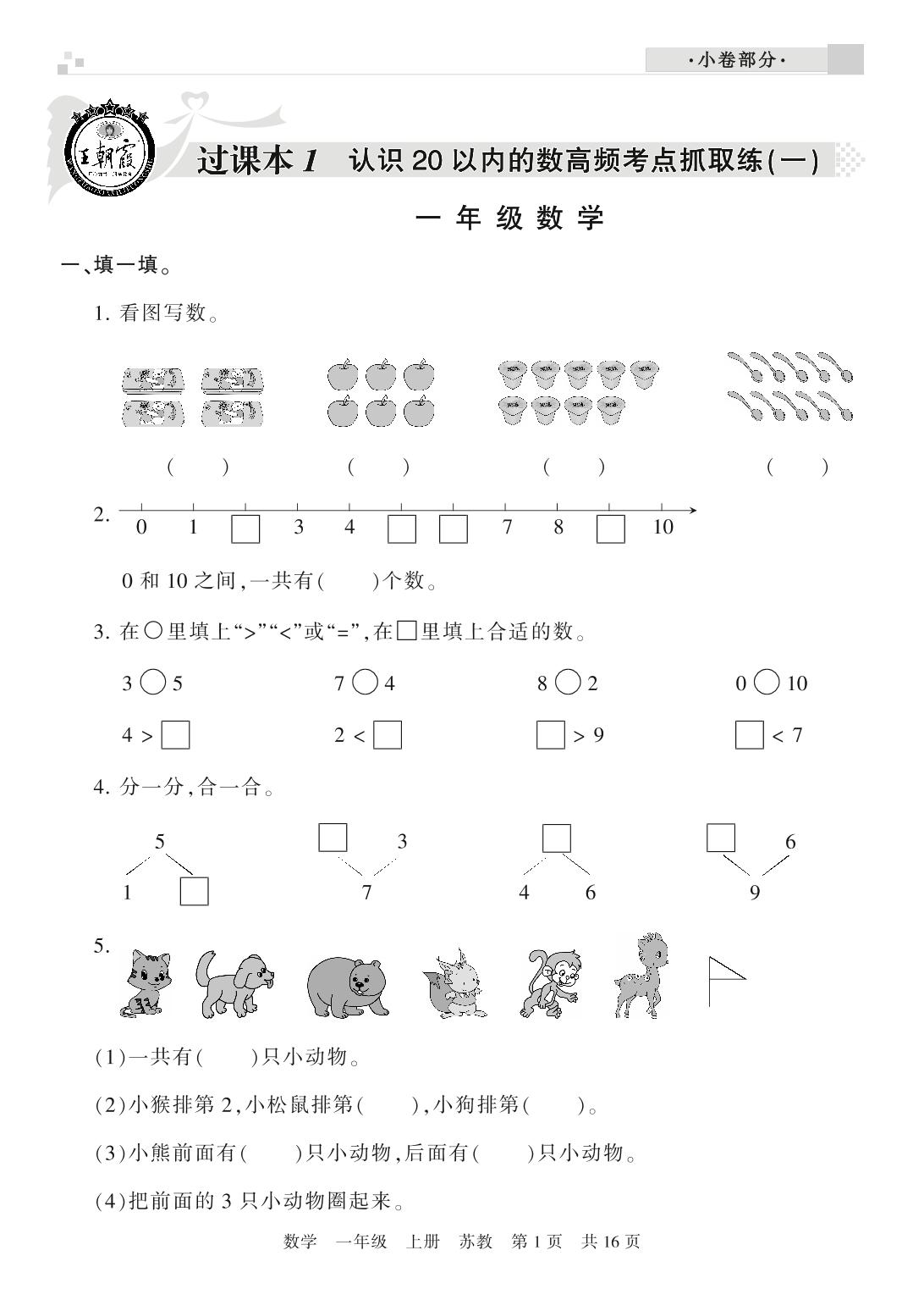 王朝霞期末过课本一年级上册数学(冀教版)【0】