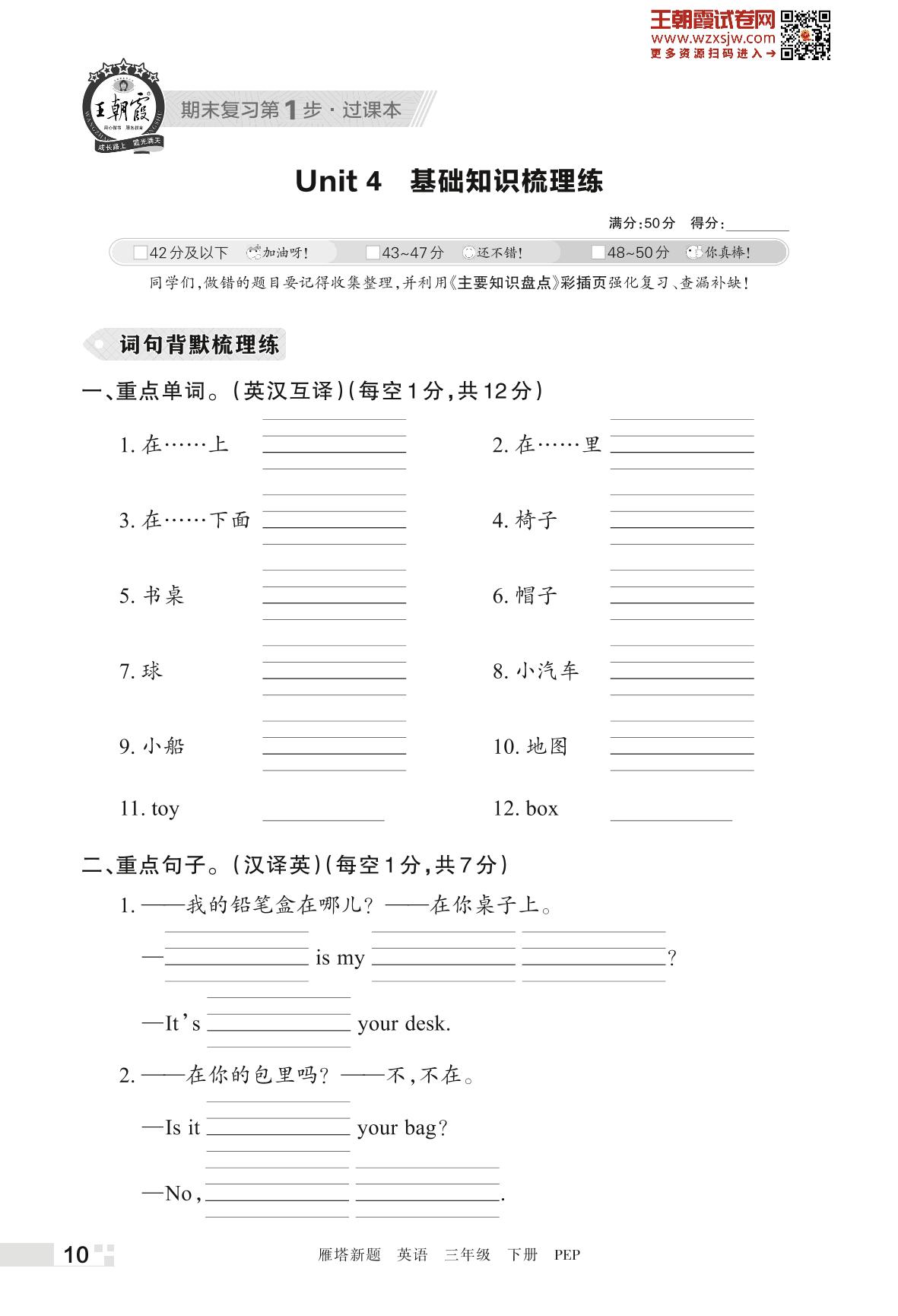 王朝霞期末过课本——Unit 4 基础知识梳理练三年级下册英语(PEP版)_R230425110148791