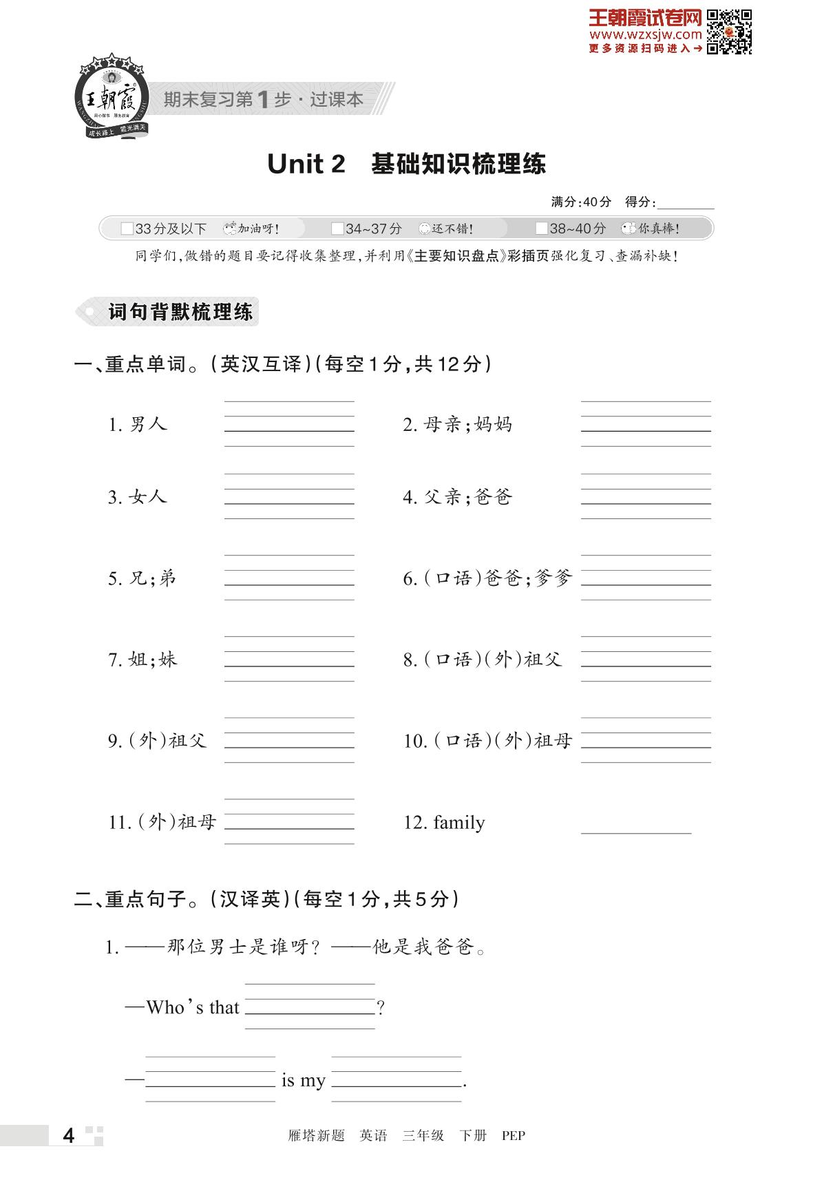 王朝霞期末过课本——Unit 2 基础知识梳理练三年级下册英语(PEP版)_R230425110148226