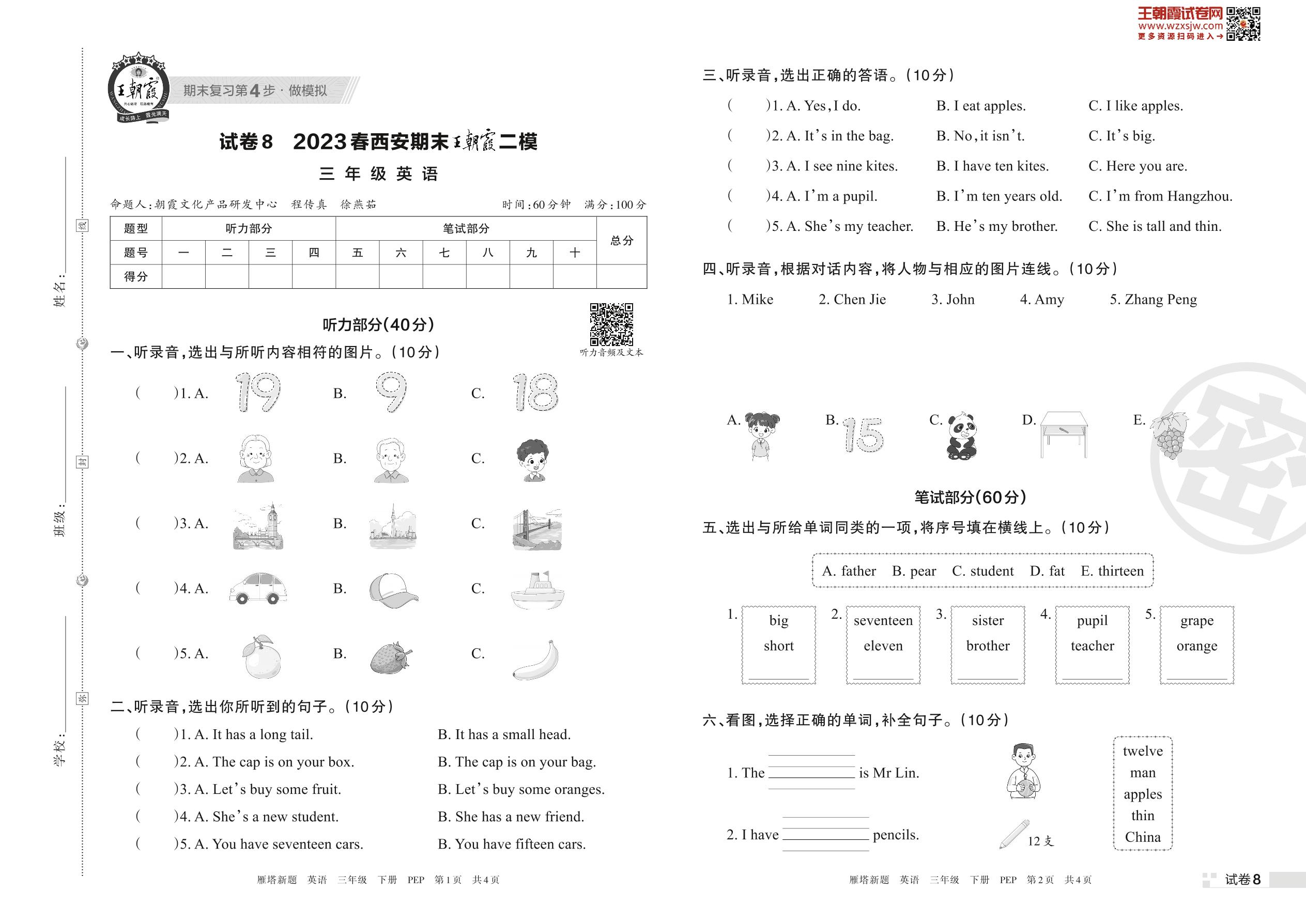 王朝霞期末模拟卷三年级下册英语(PEP版)_R230425110150882【8】