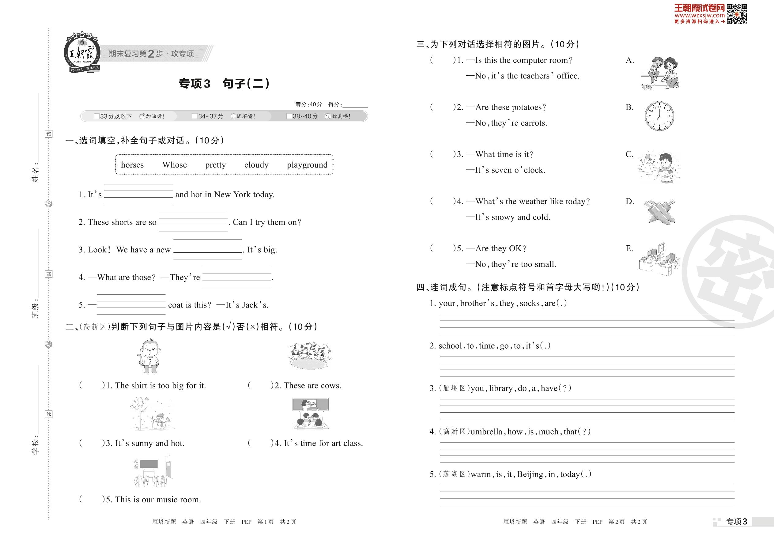 王朝霞期末专项卷——句子(二)四年级下册英语(PEP版)_R230425110930568【3】