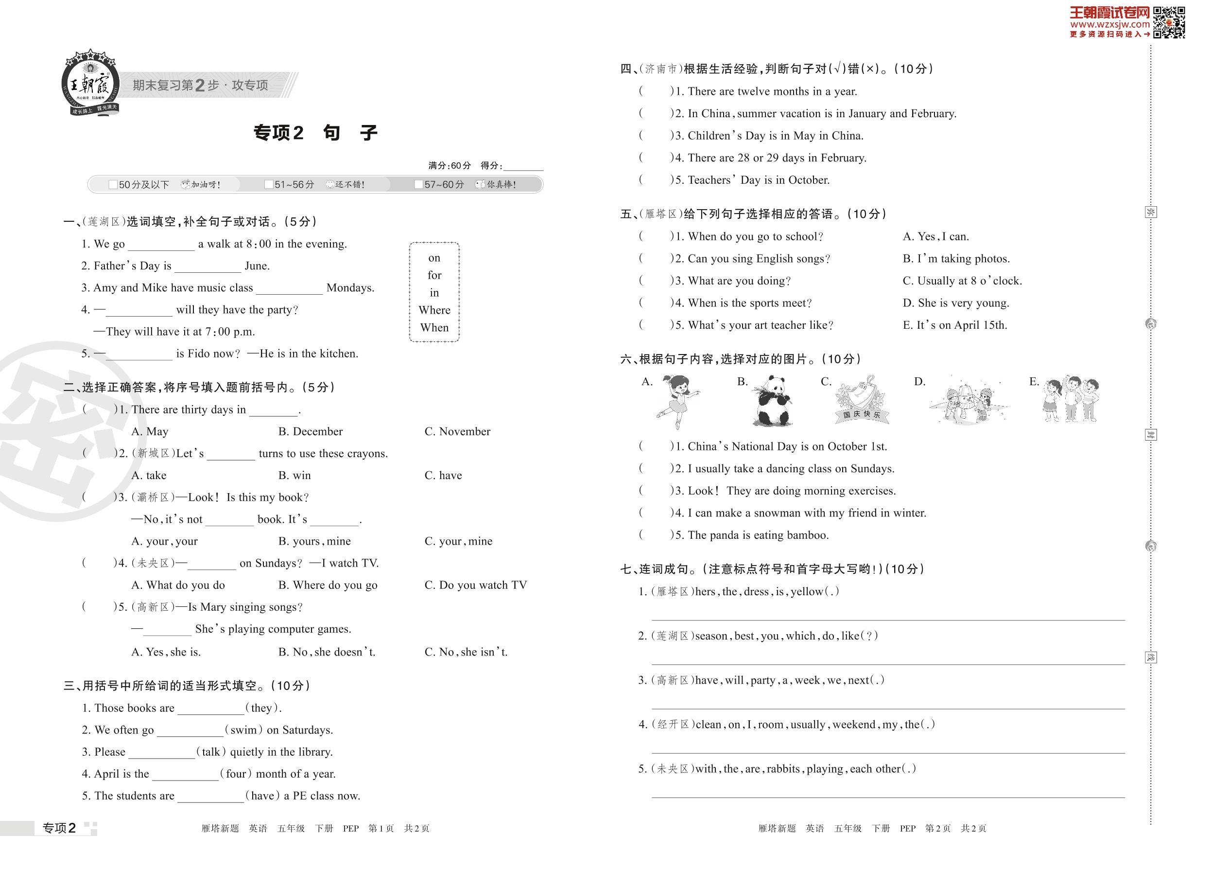 王朝霞期末专项卷——句子五年级下册英语(PEP版)_R230425112828318【2】