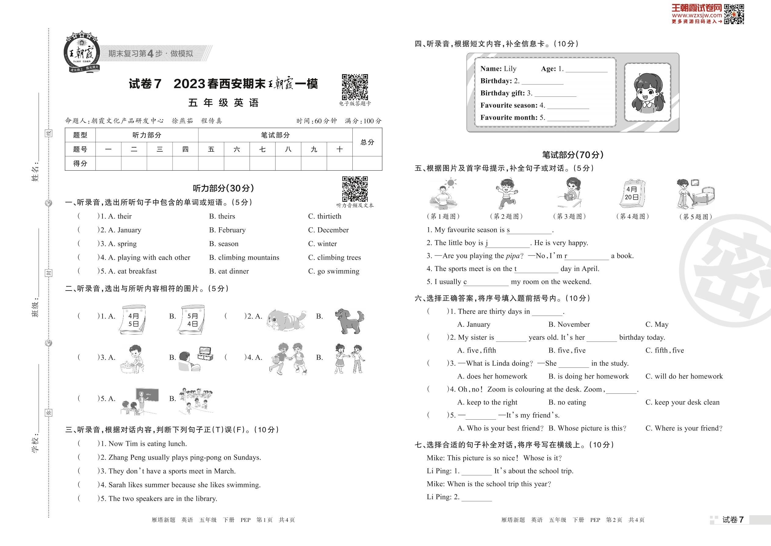 王朝霞期末模拟卷五年级下册英语(PEP版)_R230425112829603【7】