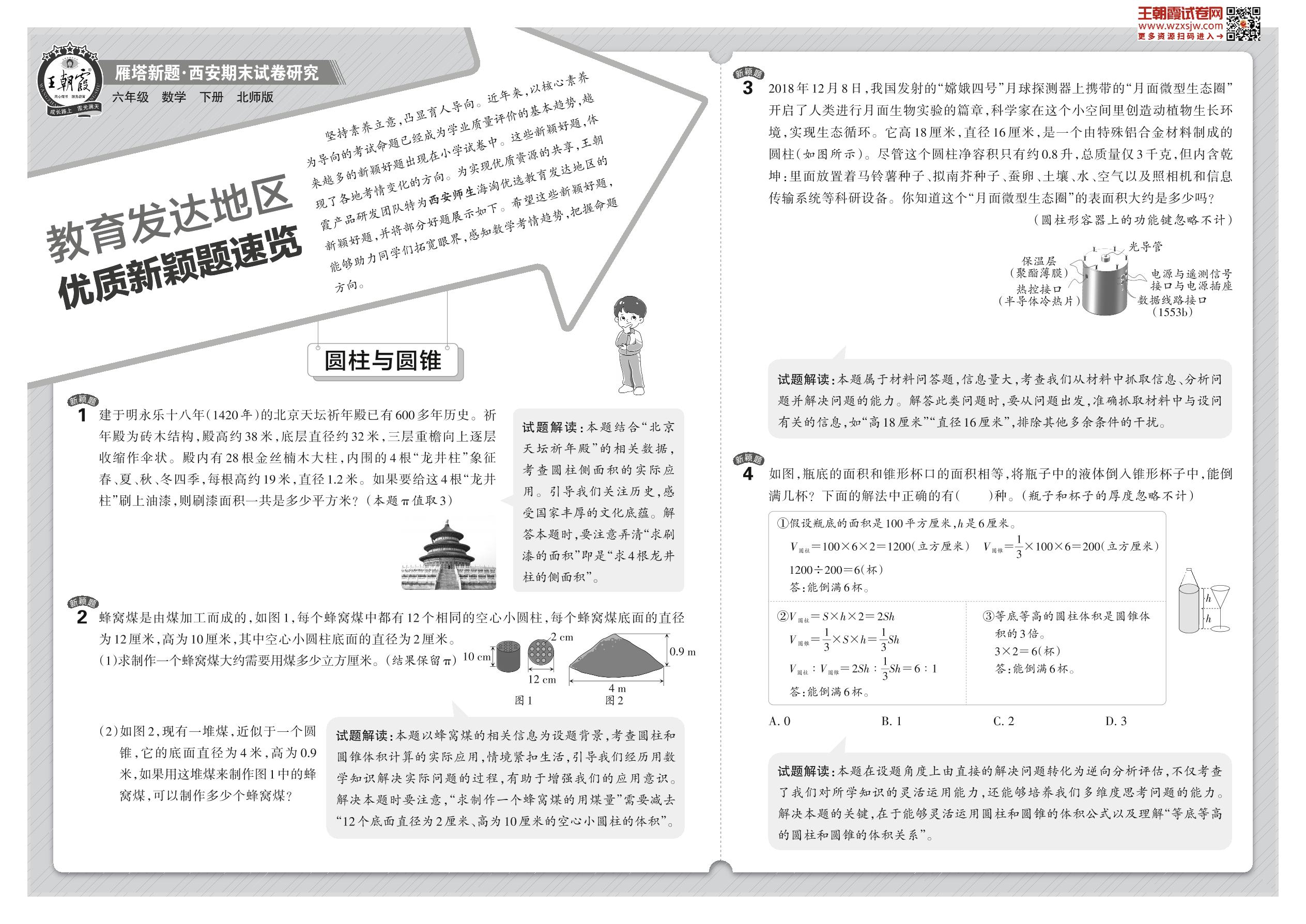 教育发达地区优质新颖题速览六年级下册数学(北师版)