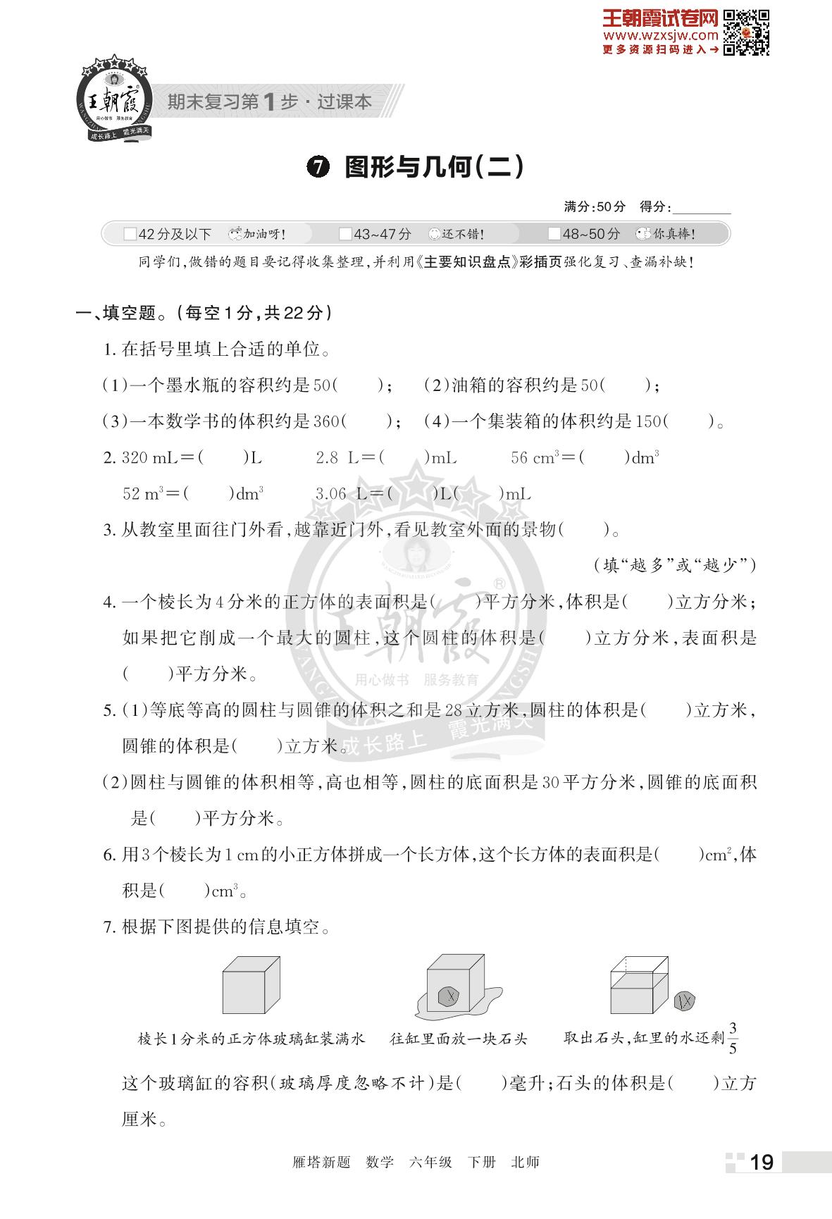 王朝霞期末过课本——7 图形与几何(二)六年级下册数学(北师版)_R230425114454053