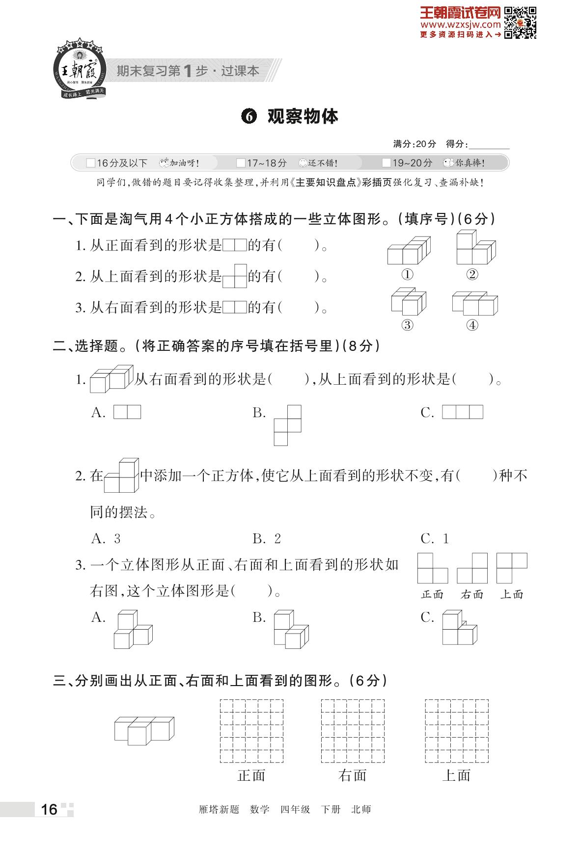 王朝霞期末过课本——6 观察物体四年级下册数学(北师版)_R230425115646406