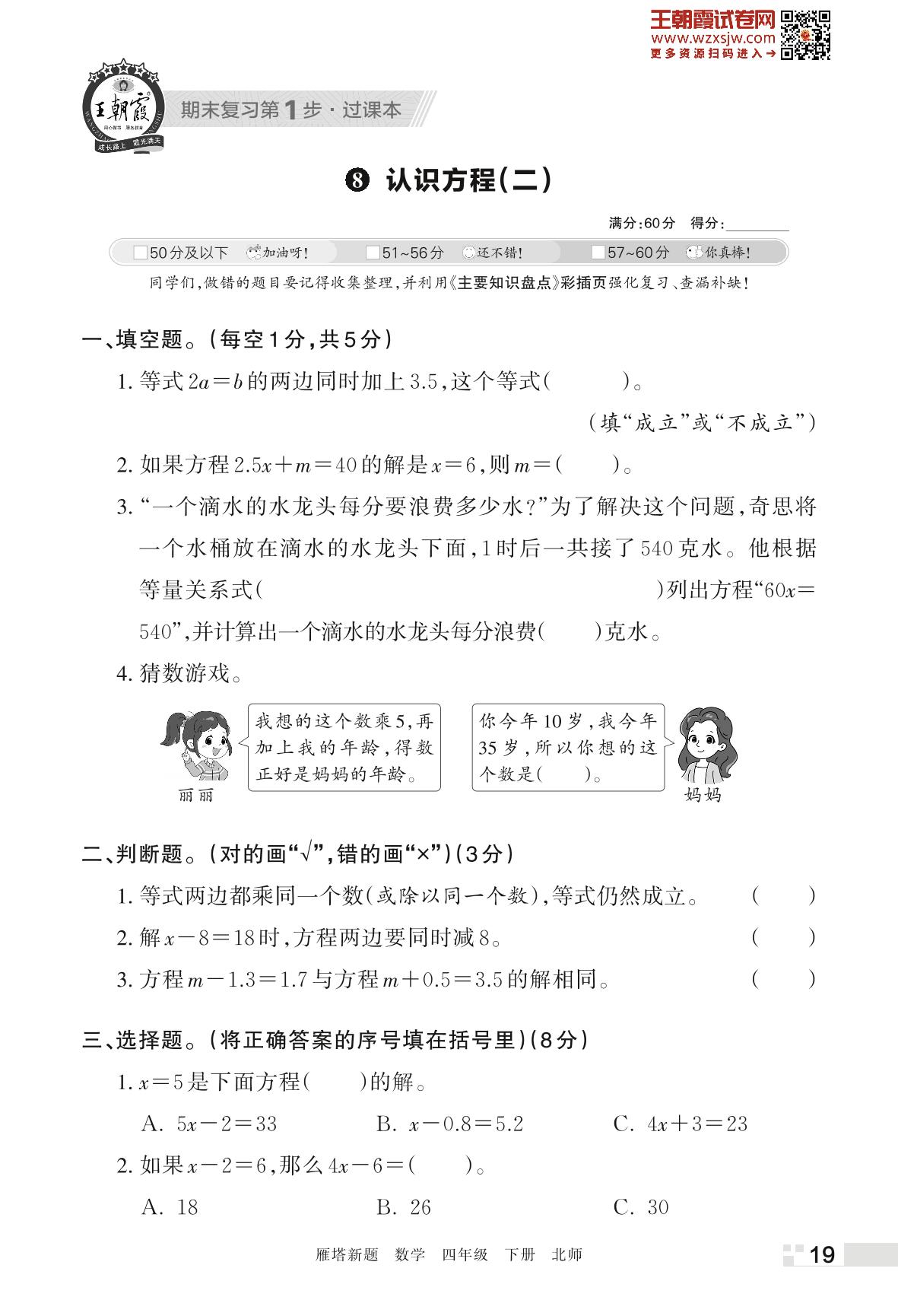 王朝霞期末过课本——8 认识方程(二)四年级下册数学(北师版)_R230425115646342