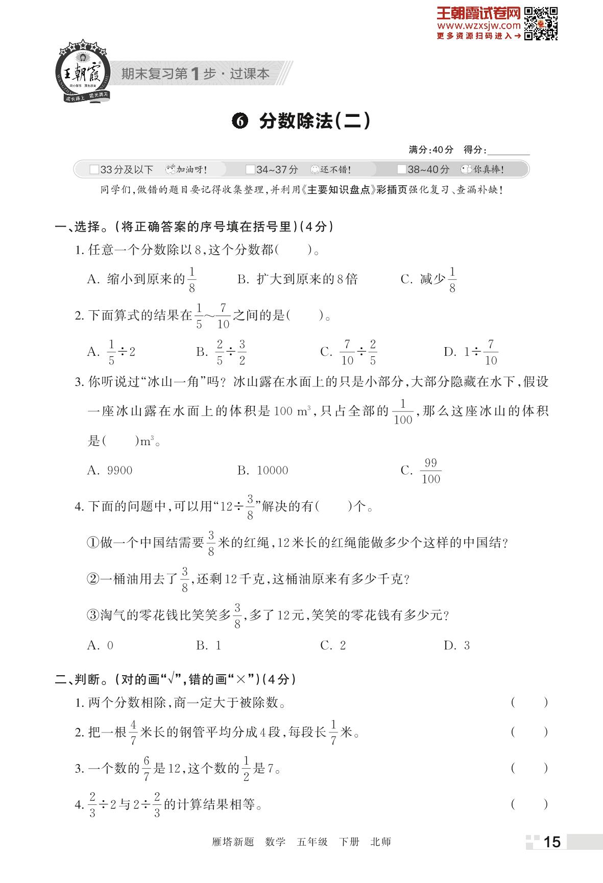 王朝霞期末过课本——6 分数除法(二)五年级下册数学(北师版)_R230425121009086