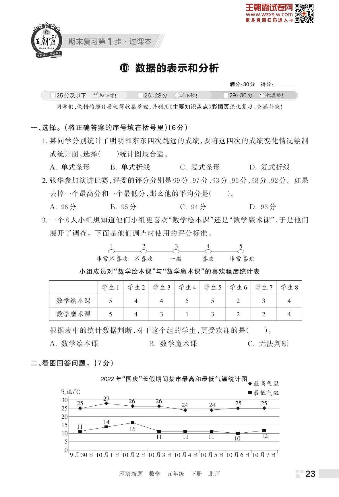 王朝霞期末过课本——10 数据的表示和分析五年级下册数学(北师版)_R230425121010280