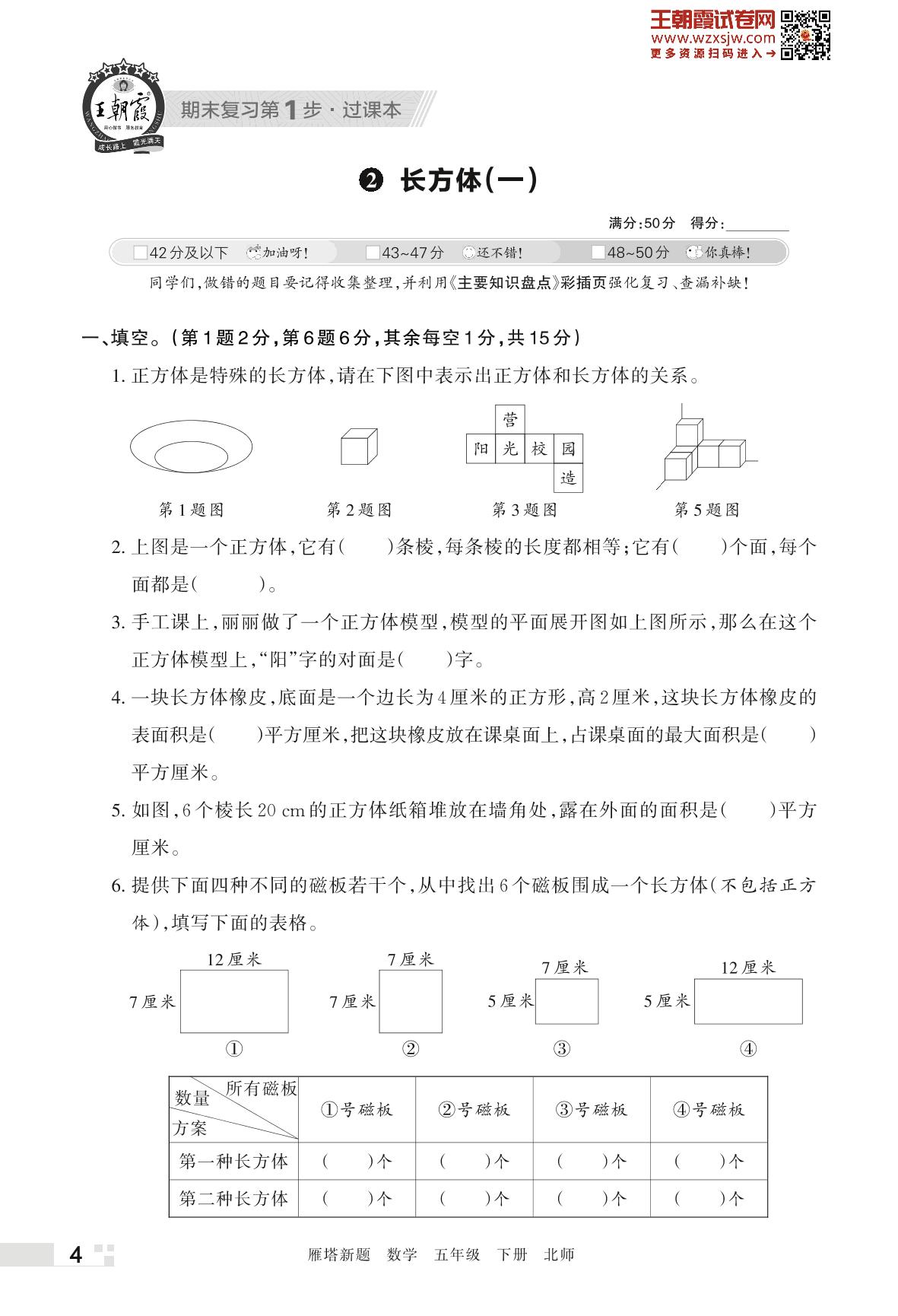 王朝霞期末过课本——2 长方体(一)五年级下册数学(北师版)_R230425121010034