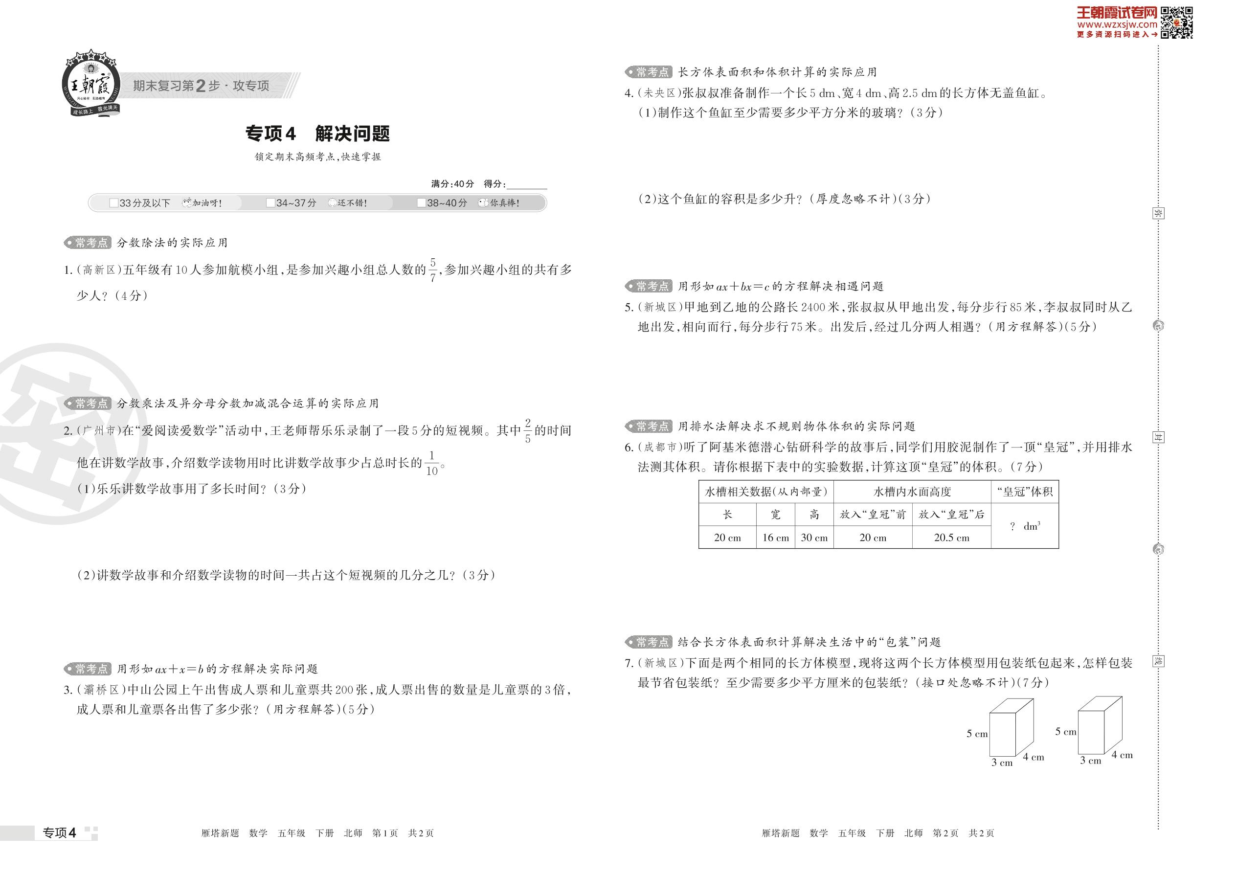 王朝霞期末专项卷——解决问题五年级下册数学(北师版)_R230425121011880【4】