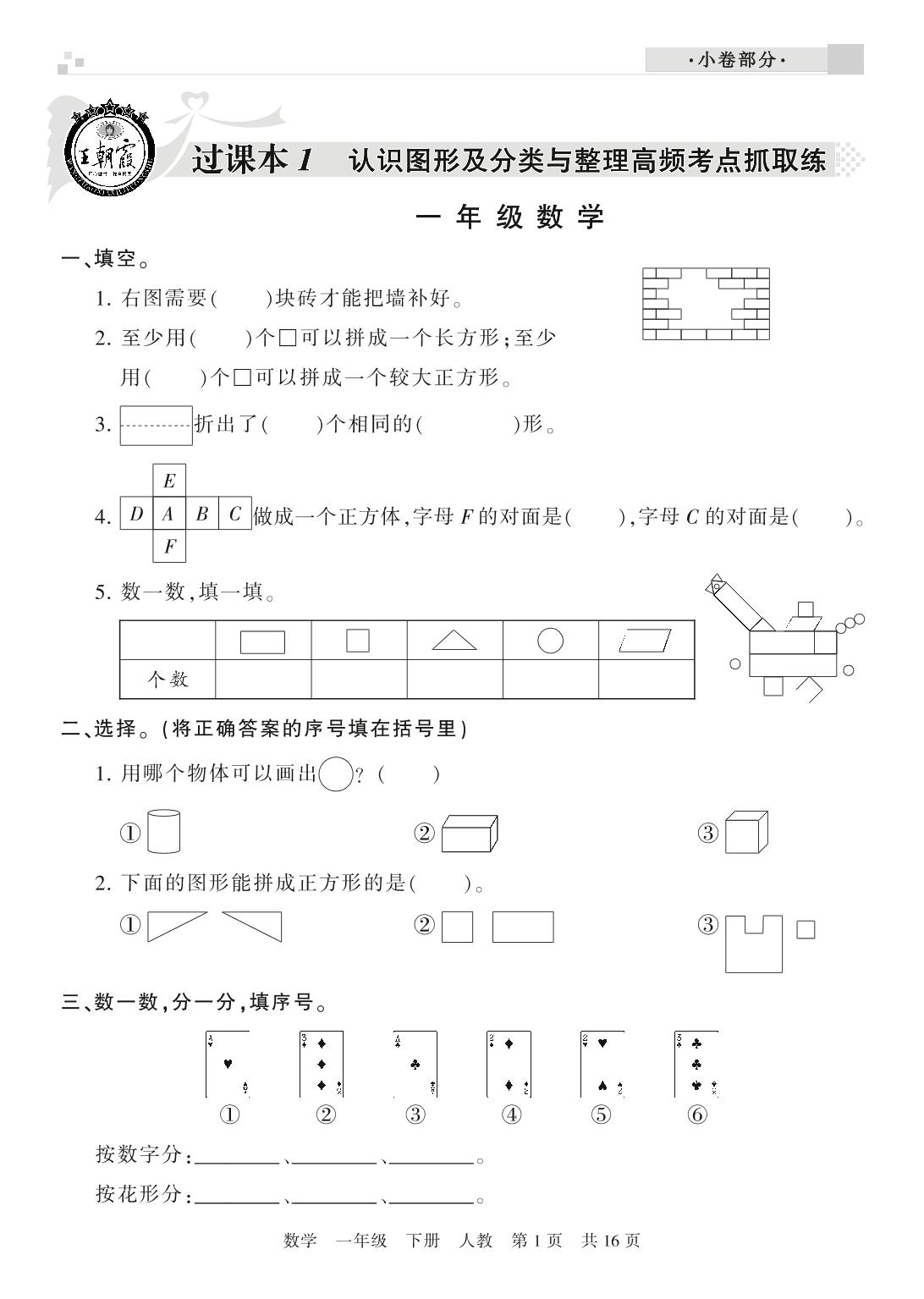 王朝霞期末小卷一年级下册数学(人教版)_R210802220539【0】