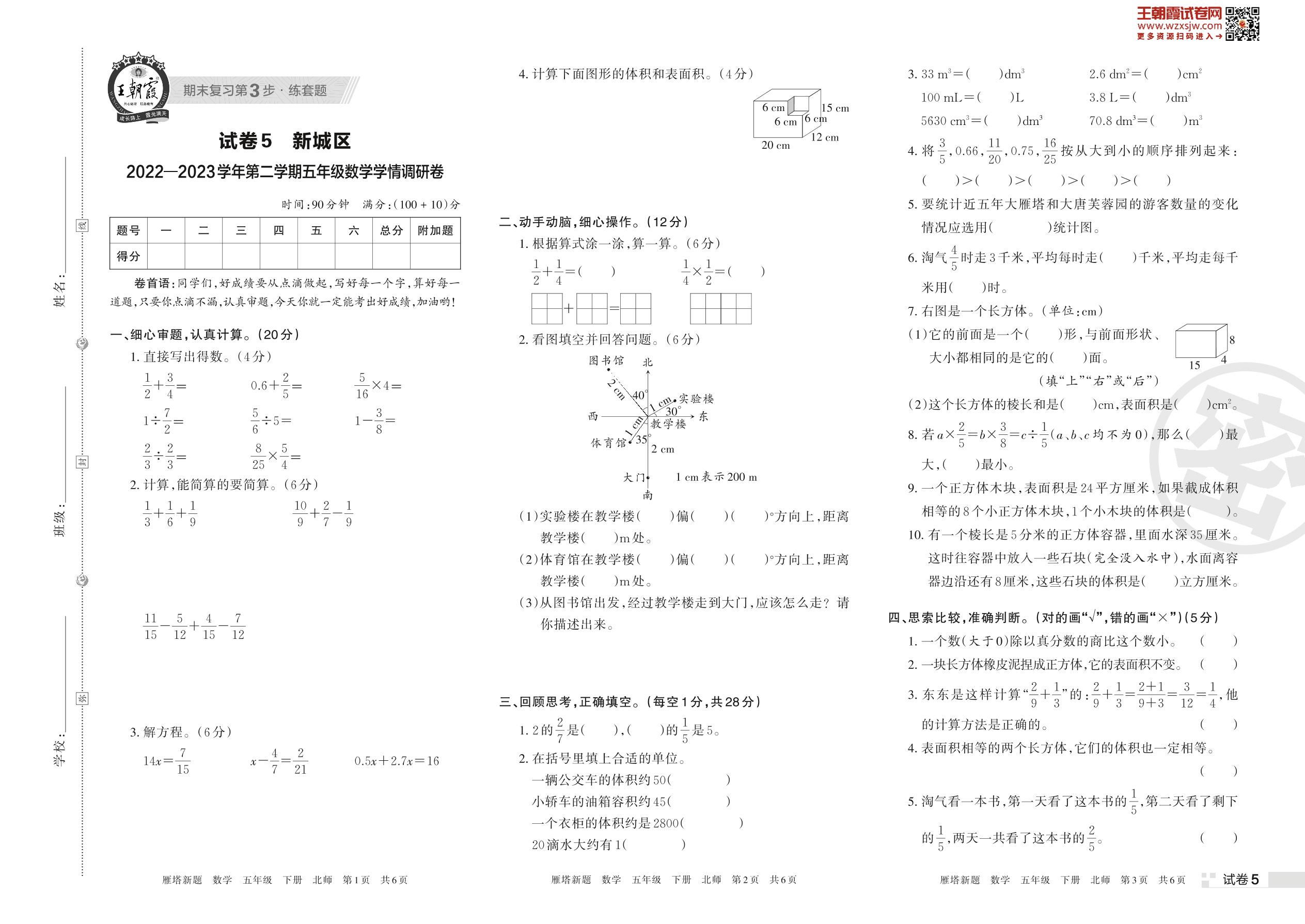 新城区2022—2023学年第二学期五年级数学学情调研卷(北师版)【5】