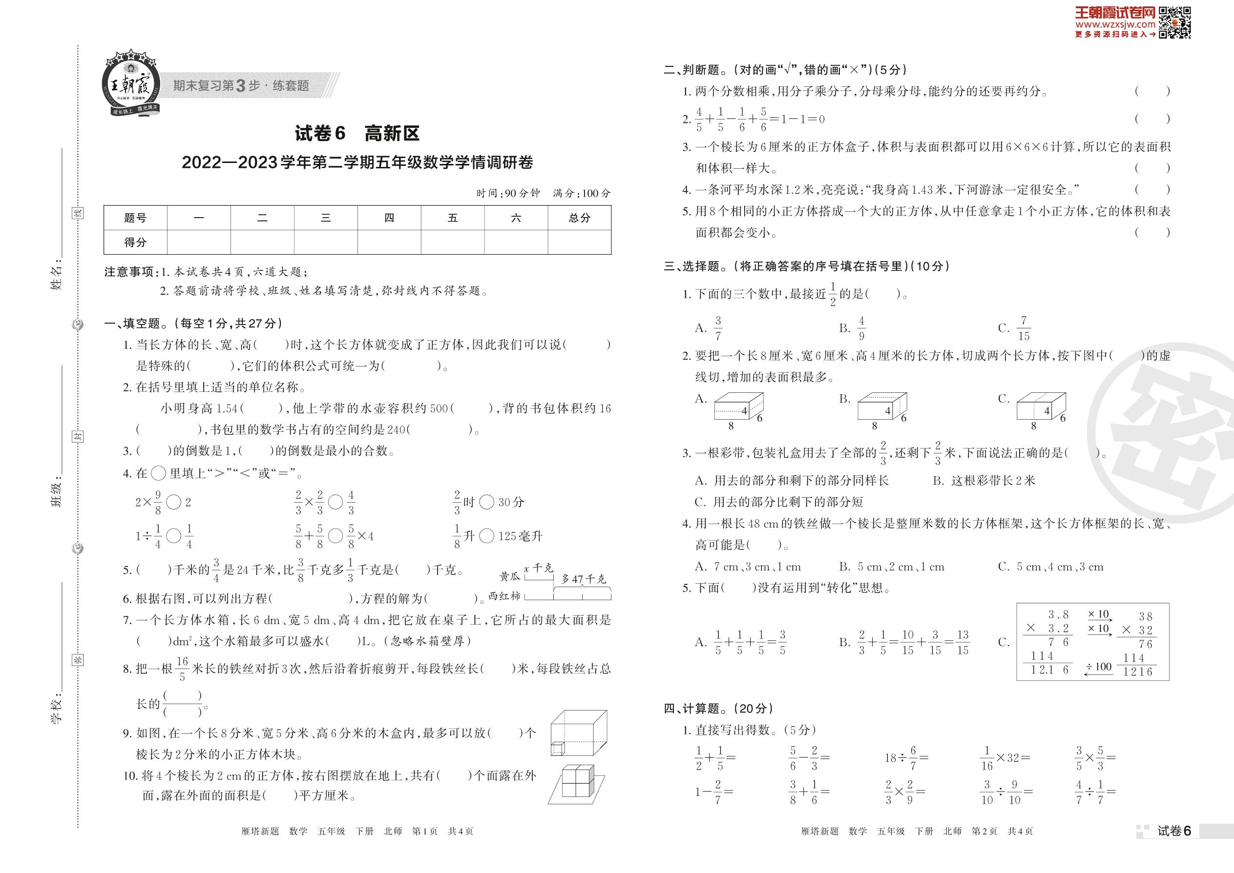 高新区2022—2023学年第二学期五年级数学学情调研卷(北师版)【6】