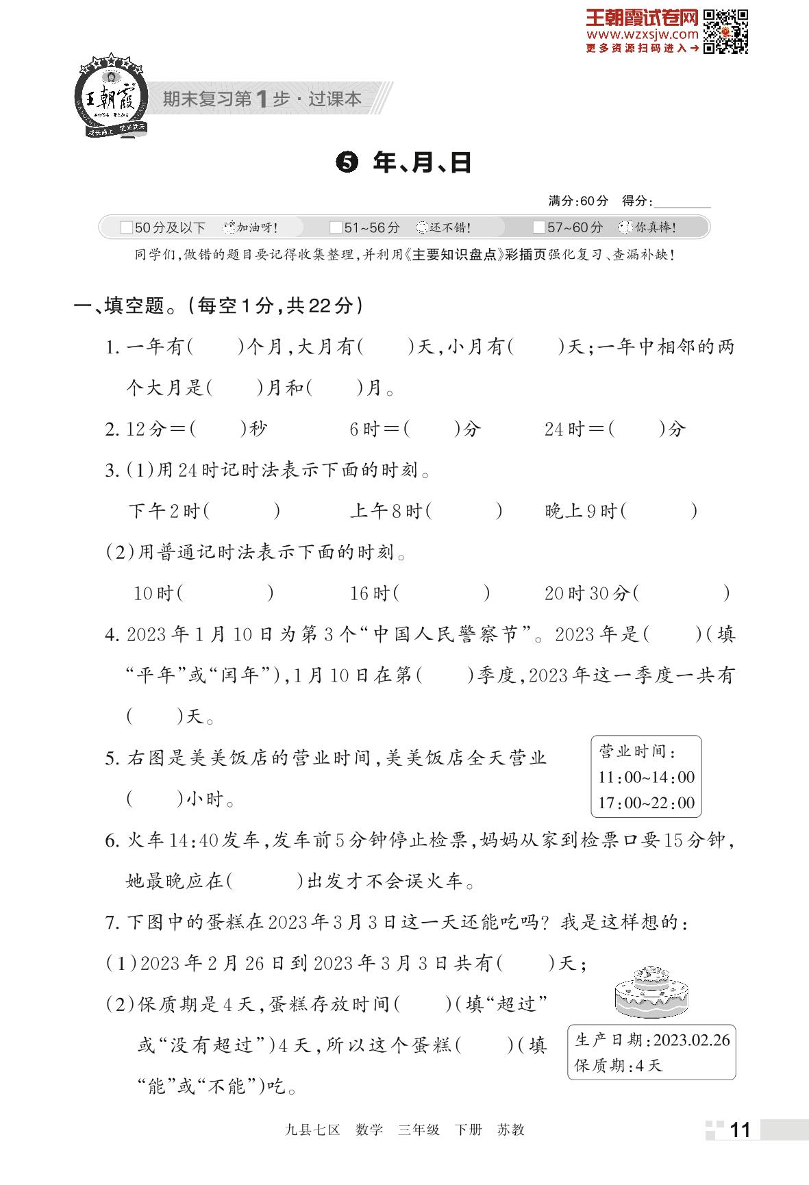 王朝霞期末过课本——5 年、月、日三年级下册数学(苏教版)_R230425135531409
