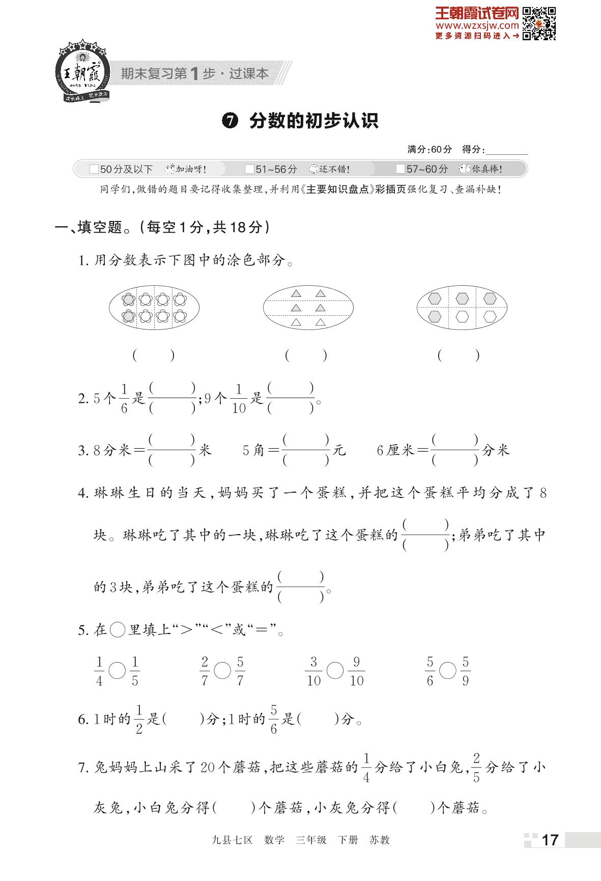 王朝霞期末过课本——7 分数的初步认识三年级下册数学(苏教版)_R230425135532944
