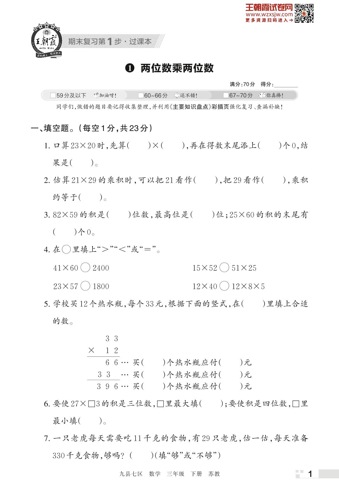 王朝霞期末过课本——1 两位数乘两位数三年级下册数学(苏教版)_R230425135532396