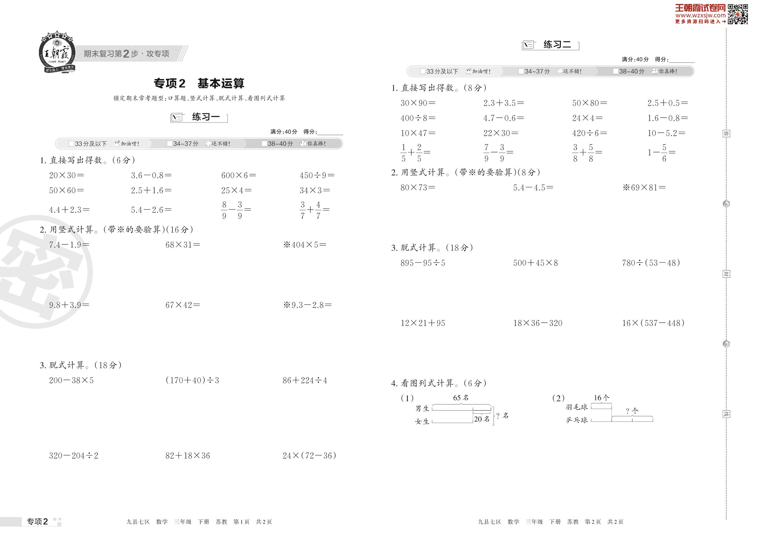 王朝霞期末专项卷——基本运算三年级下册数学(苏教版)_R230425135532800【2】