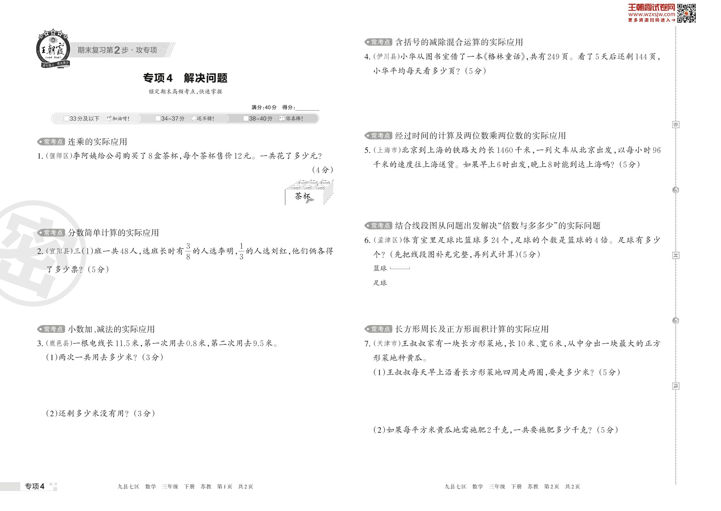 王朝霞期末专项卷——解决问题三年级下册数学(苏教版)_R230425135533630【4】