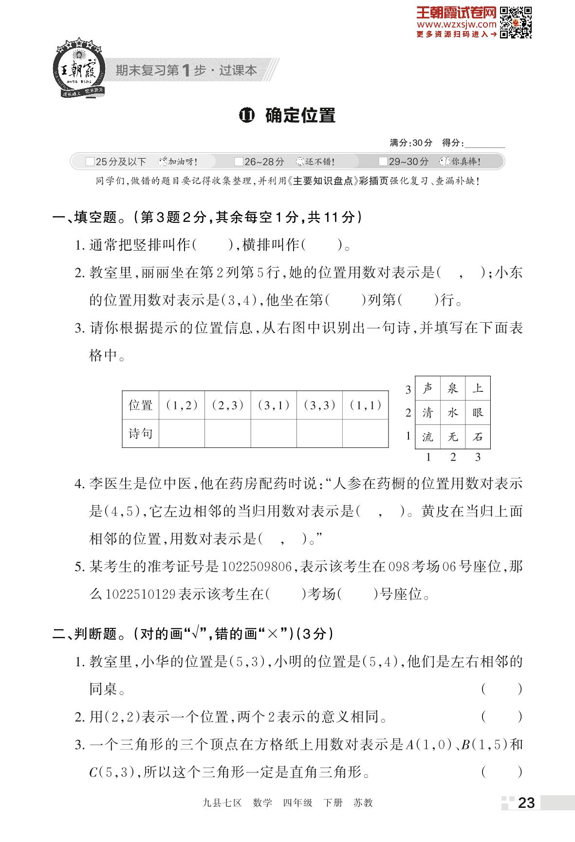 王朝霞期末过课本——11 确定位置四年级下册数学(苏教版)_R230425140117467