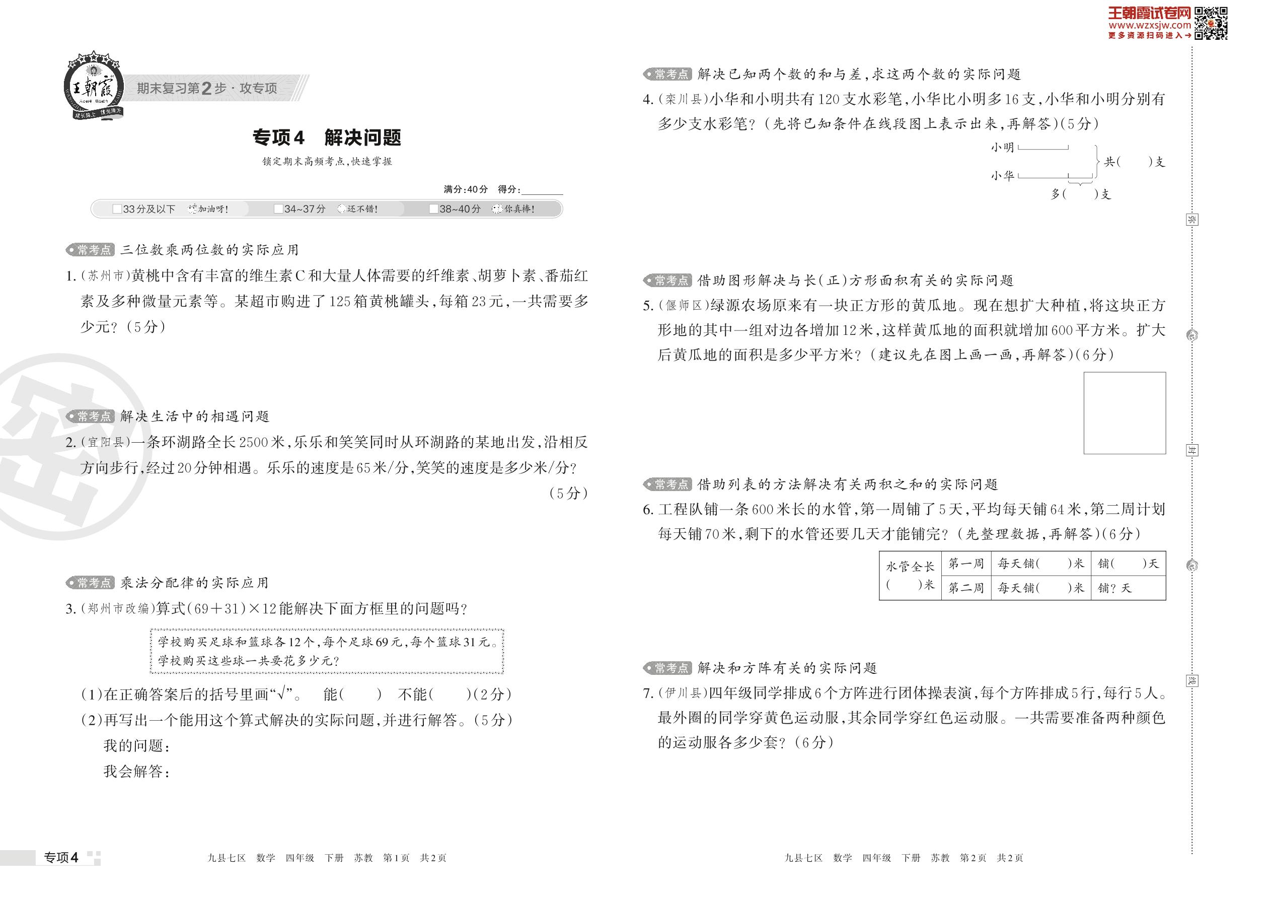 王朝霞期末专项卷——解决问题四年级下册数学(苏教版)_R230425140118098【4】