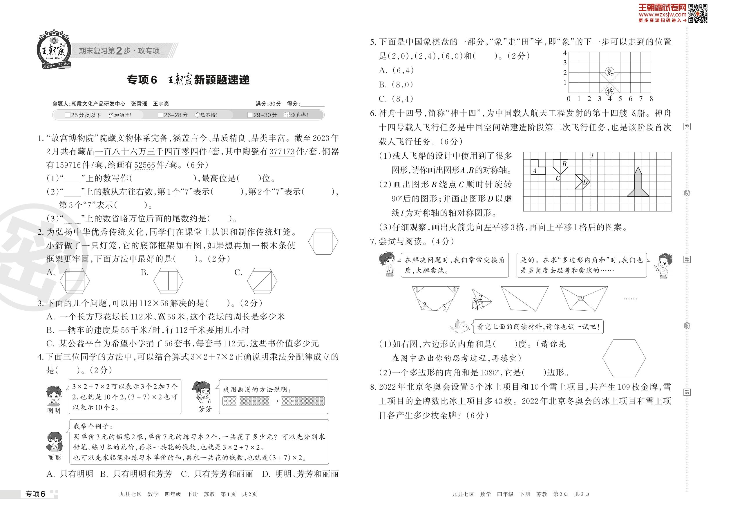 王朝霞期末专项卷——王朝霞新颖题速递四年级下册数学(苏教版)【6】