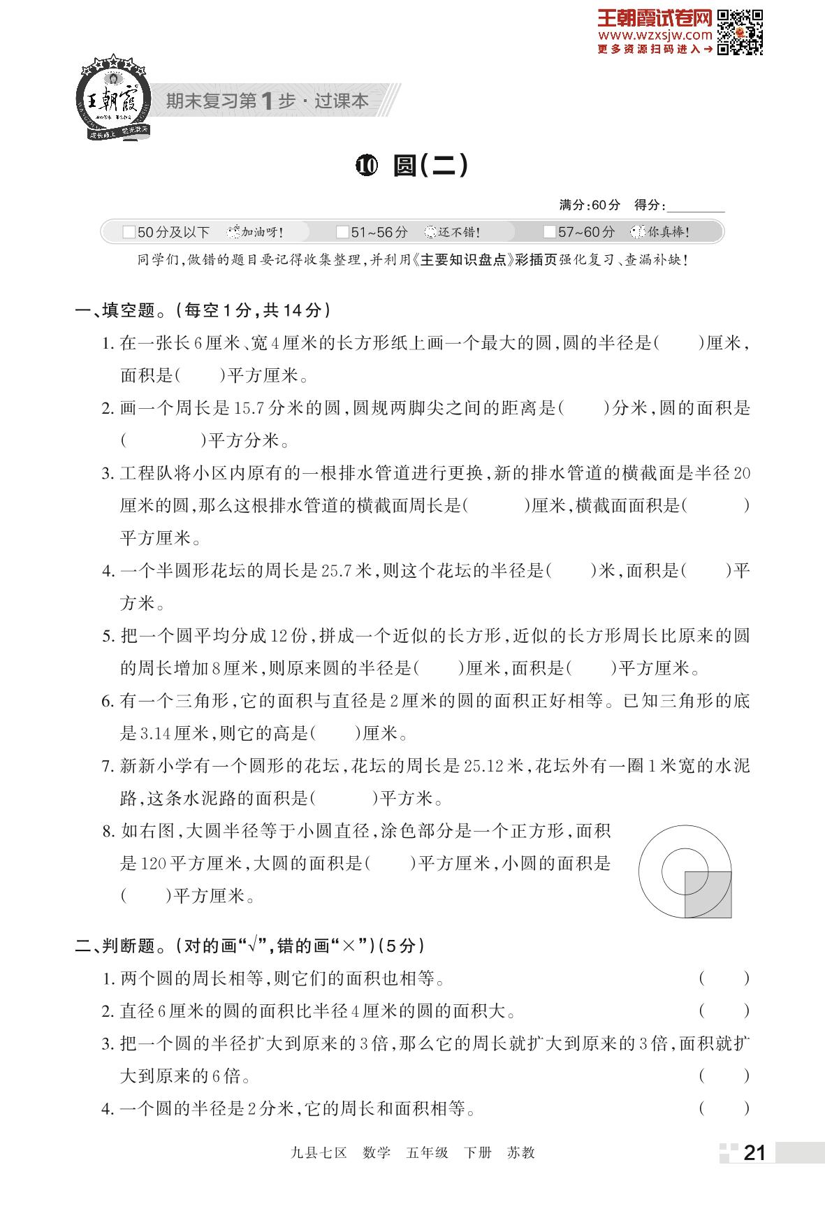 王朝霞期末过课本——10 圆(二)五年级下册数学(苏教版)_R230425140641867