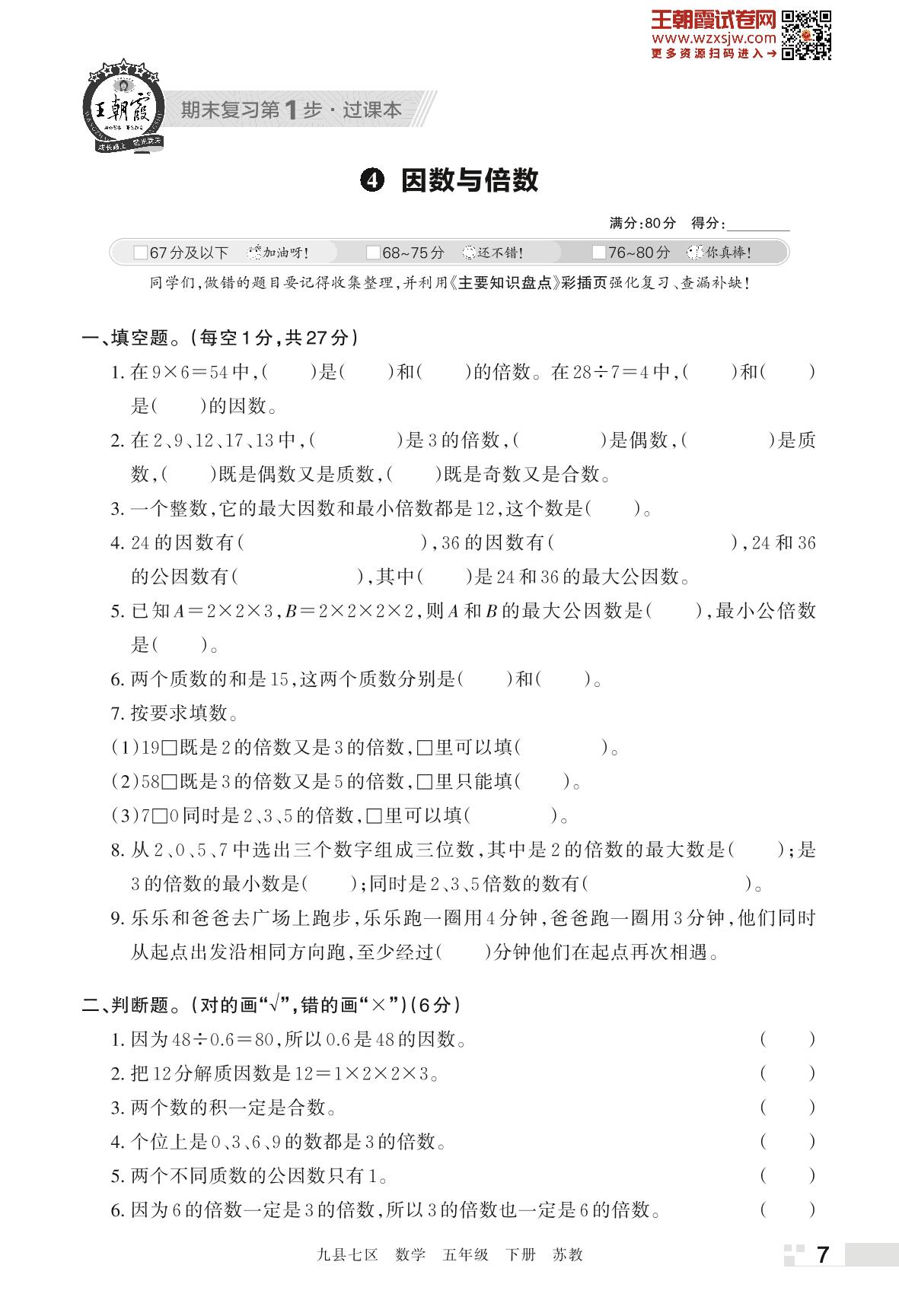 王朝霞期末过课本——4 因数与倍数五年级下册数学(苏教版)_R230425140641839