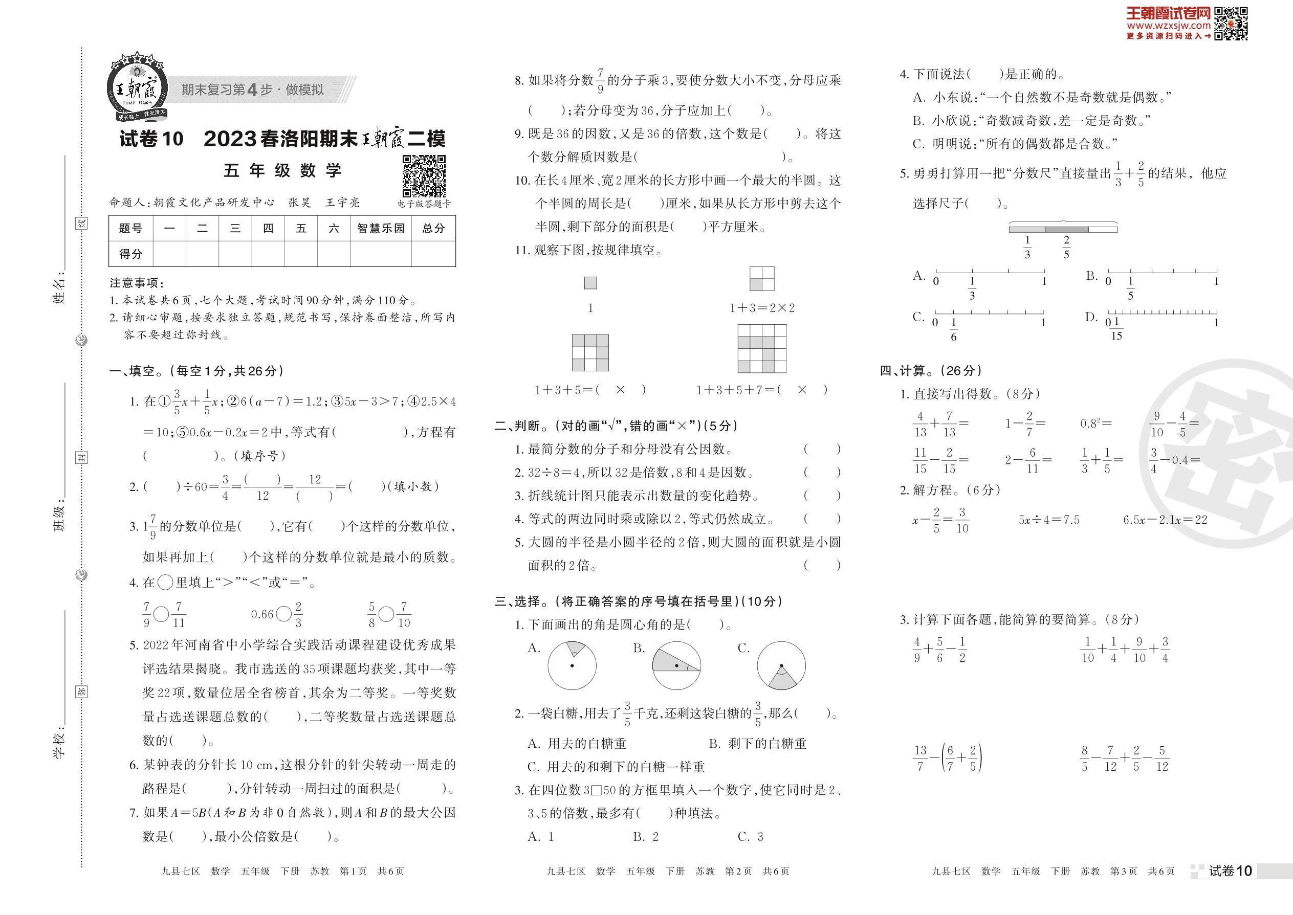 王朝霞期末模拟卷五年级下册数学(苏教版)【10】