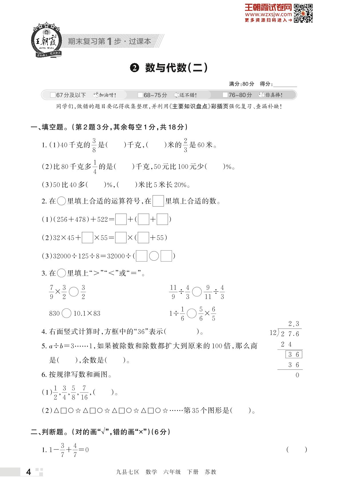 王朝霞期末过课本——2 数与代数(二)六年级下册数学(苏教版)_R230425141201256