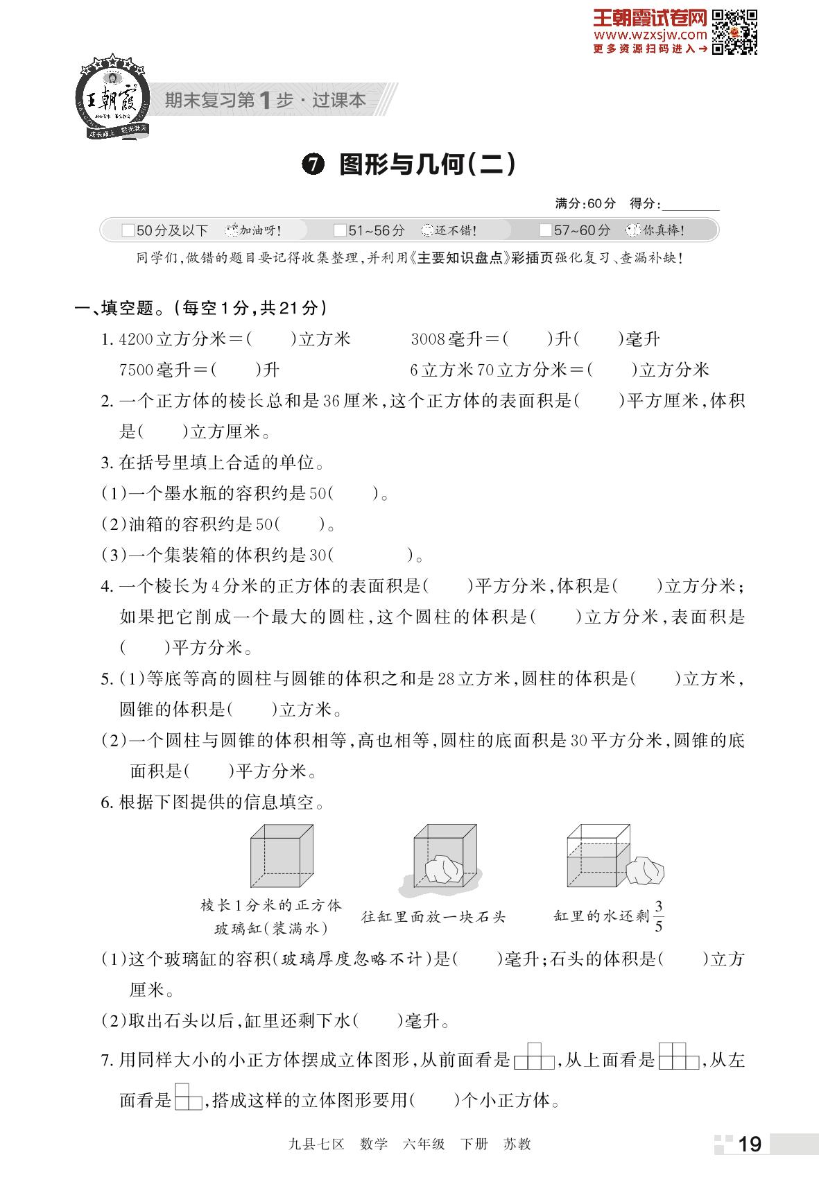 王朝霞期末过课本——7 图形与几何(二)六年级下册数学(苏教版)_R230425141202206