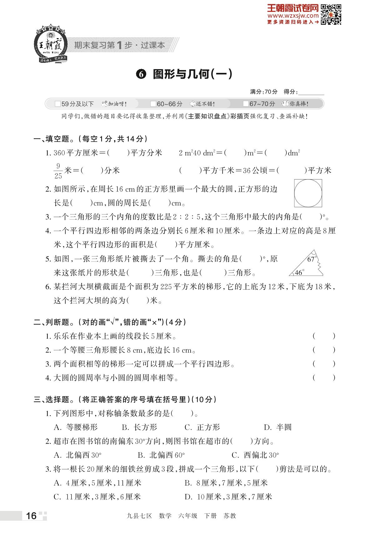 王朝霞期末过课本——6 图形与几何(一)六年级下册数学(苏教版)_R230425141202719