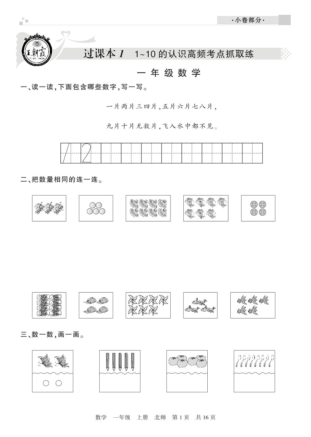 一年级数学北师版上册过课本
