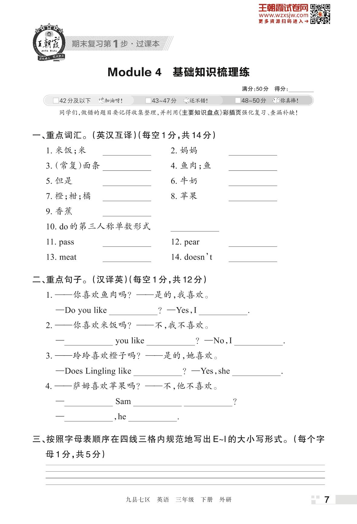 王朝霞期末过课本——Module 4 基础知识梳理练三年级下册英语(外研版)_R230425141725377