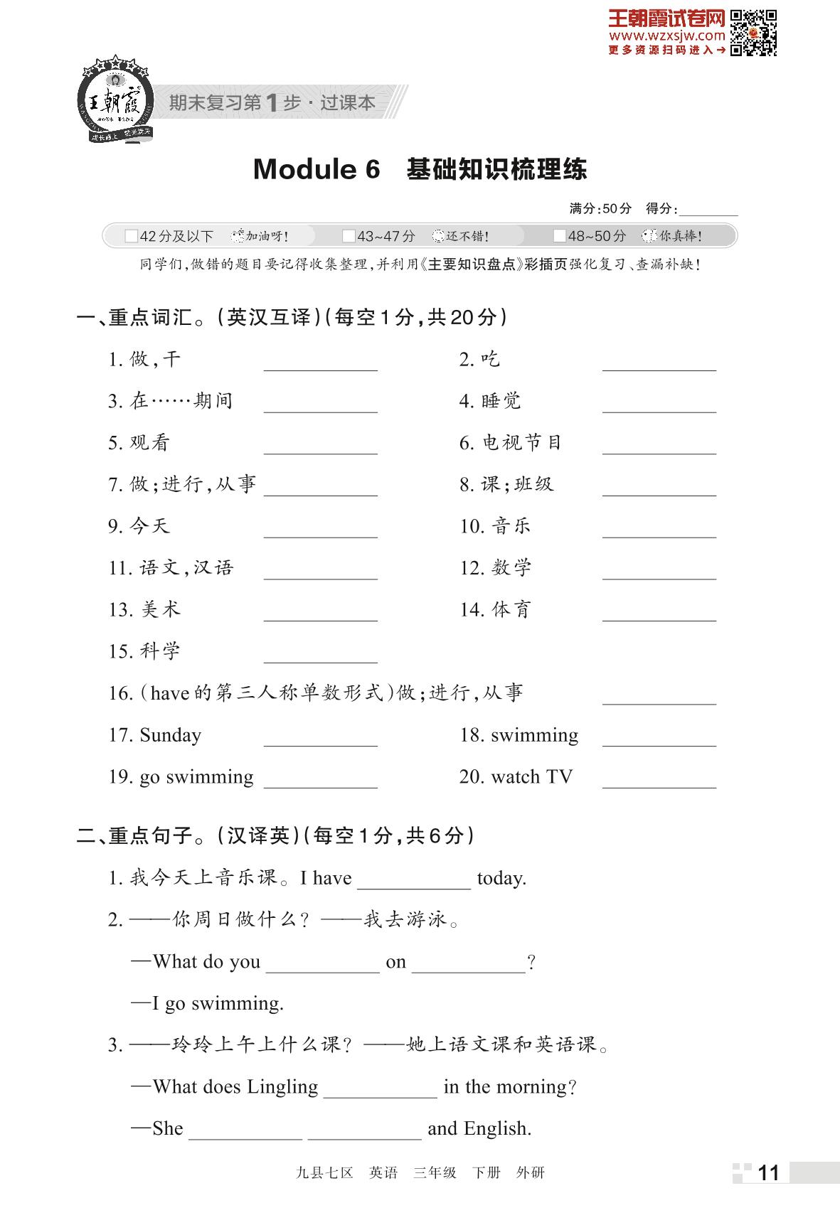 王朝霞期末过课本——Module 6 基础知识梳理练三年级下册英语(外研版)_R230425141725039