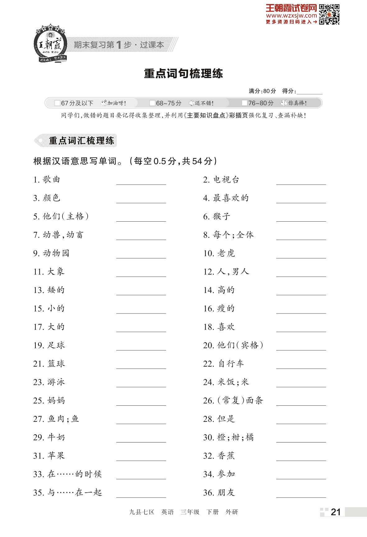 王朝霞期末过课本——重点词句梳理练三年级下册英语(外研版)_R230425141725475