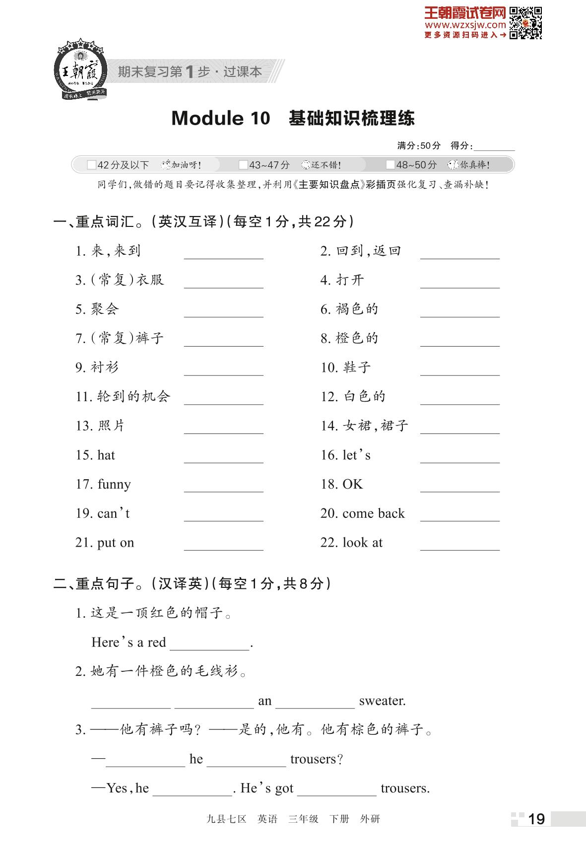 王朝霞期末过课本——Module 10 基础知识梳理练三年级下册英语(外研版)_R230425141725257
