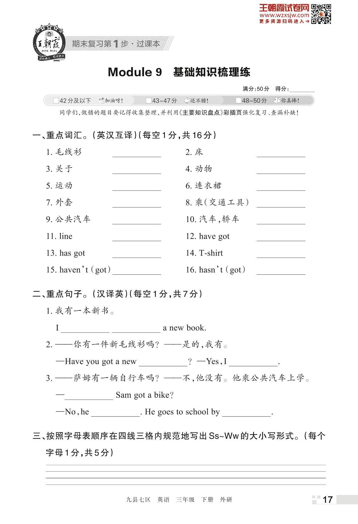 王朝霞期末过课本——Module 9 基础知识梳理练三年级下册英语(外研版)_R230425141725046