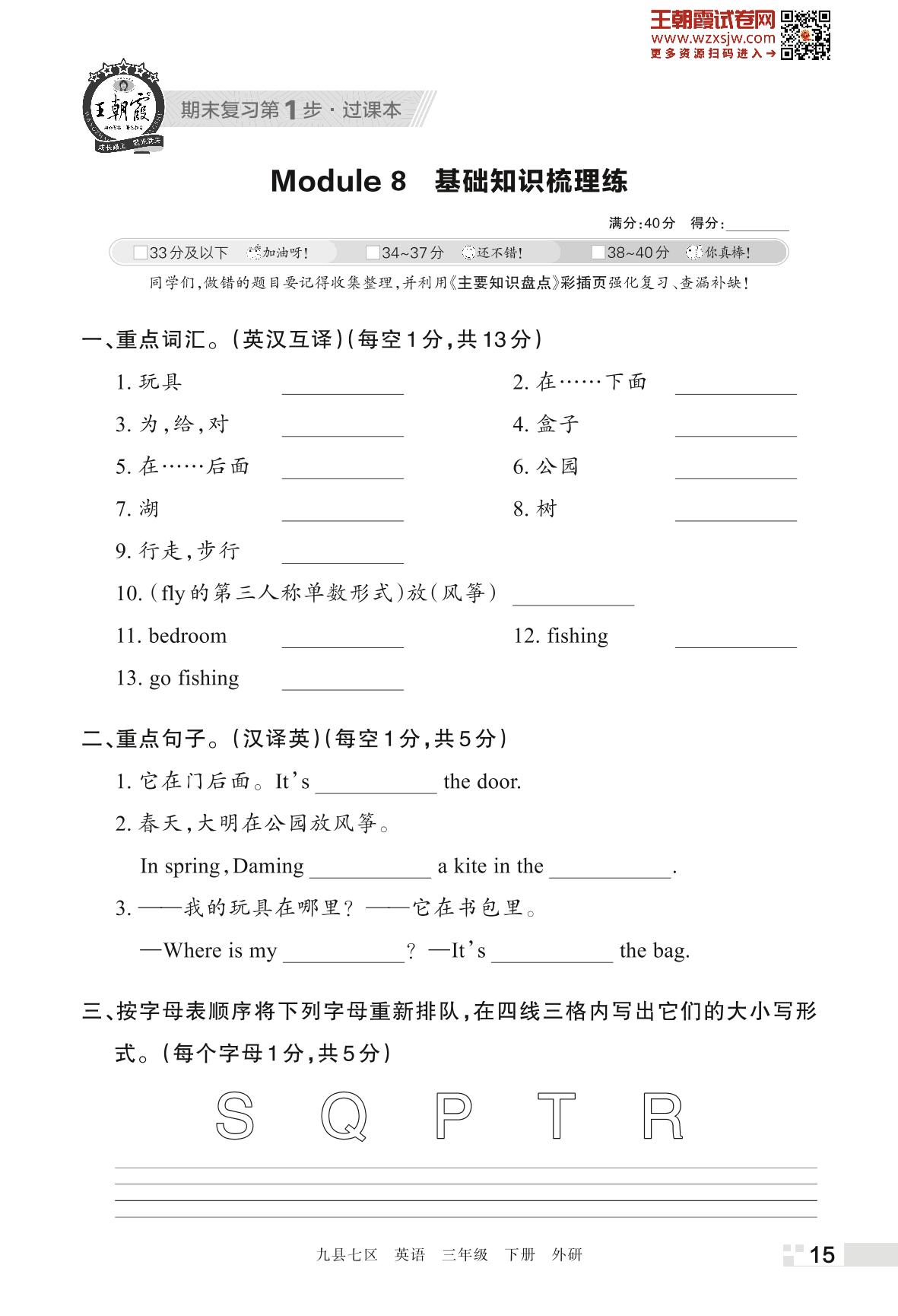王朝霞期末过课本——Module 8 基础知识梳理练三年级下册英语(外研版)_R230425141726295