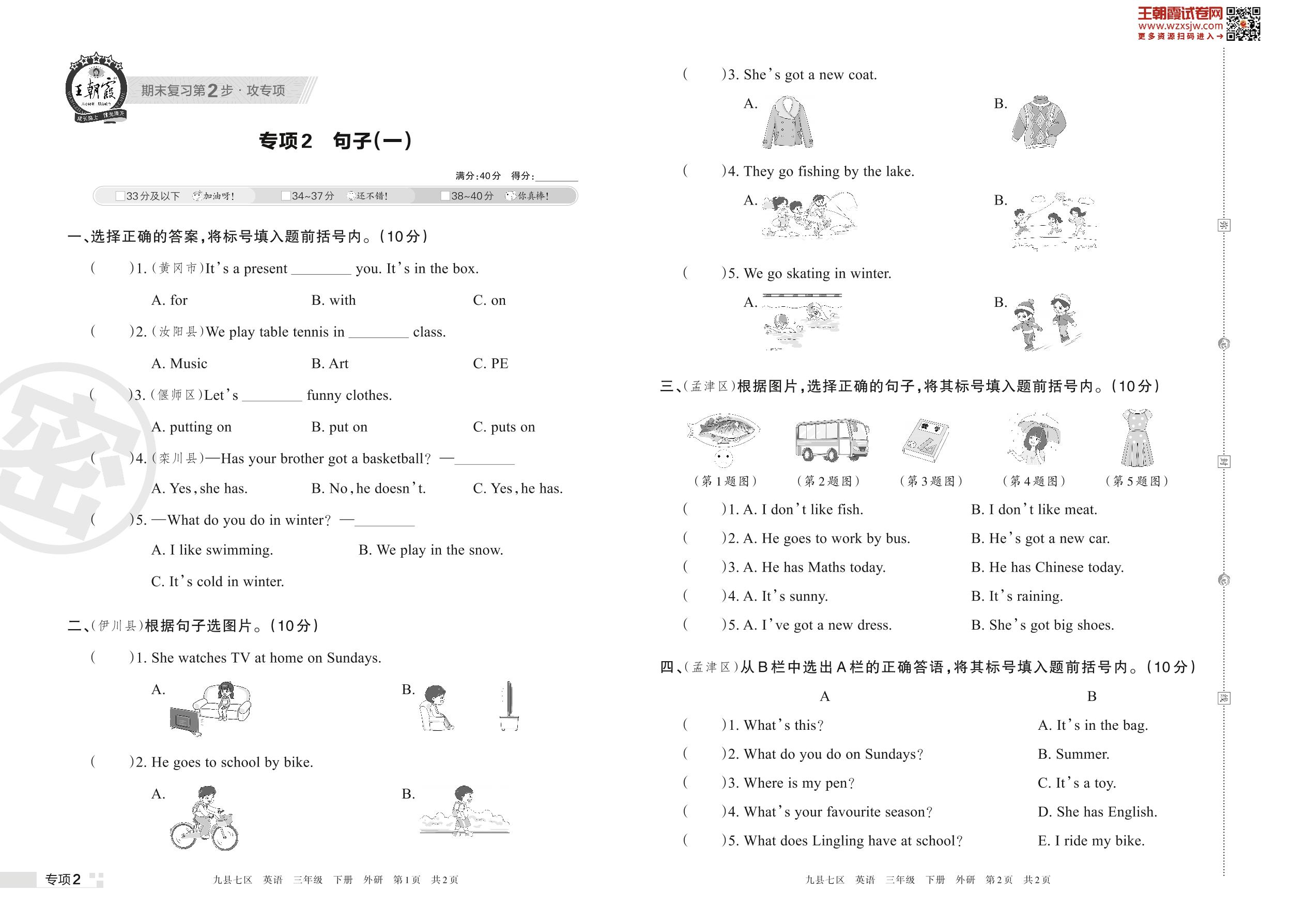 王朝霞期末专项卷——句子(一)三年级下册英语(外研版)_R230425141726839【2】