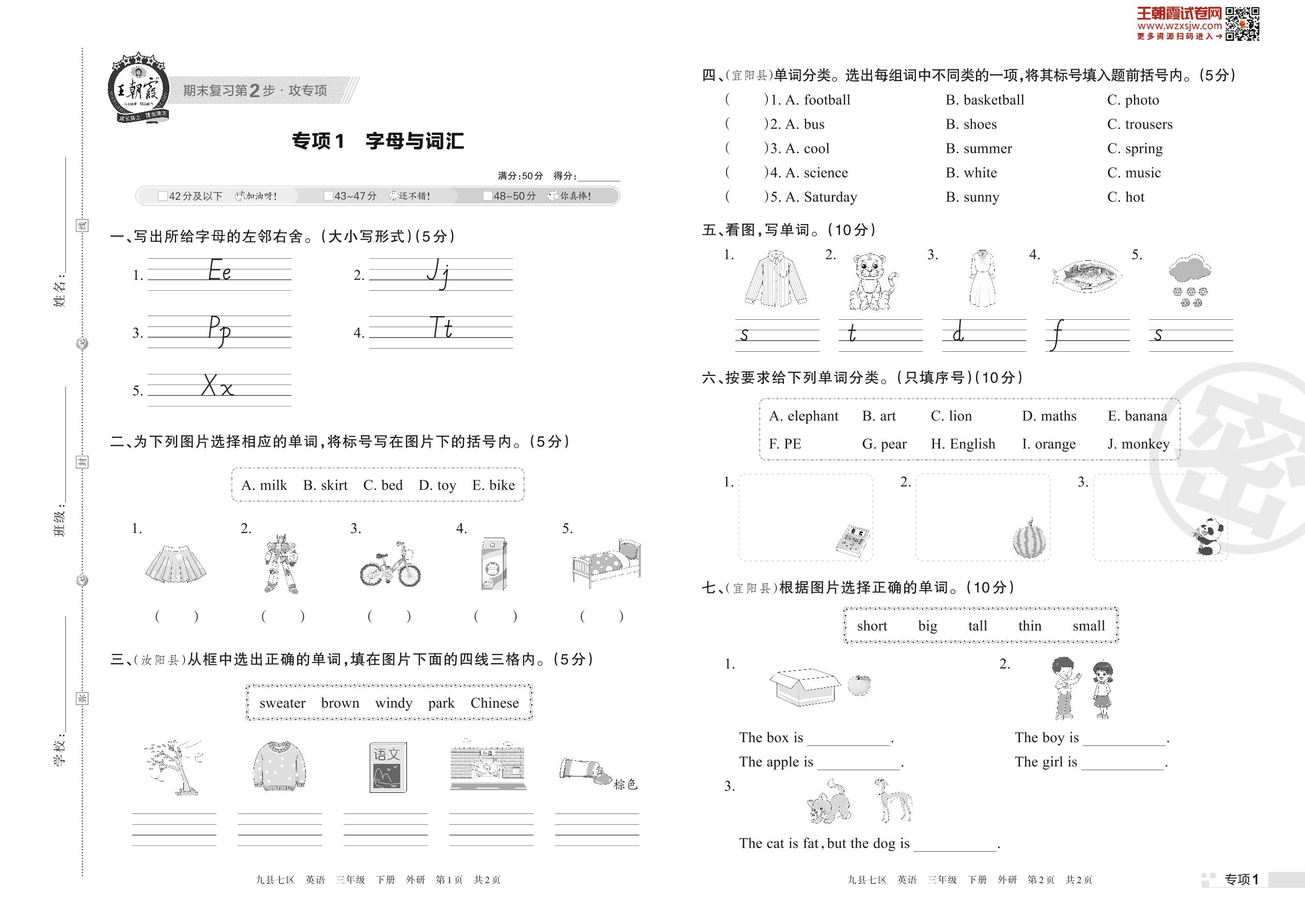 王朝霞期末专项卷——字母与词汇三年级下册英语(外研版)【1】