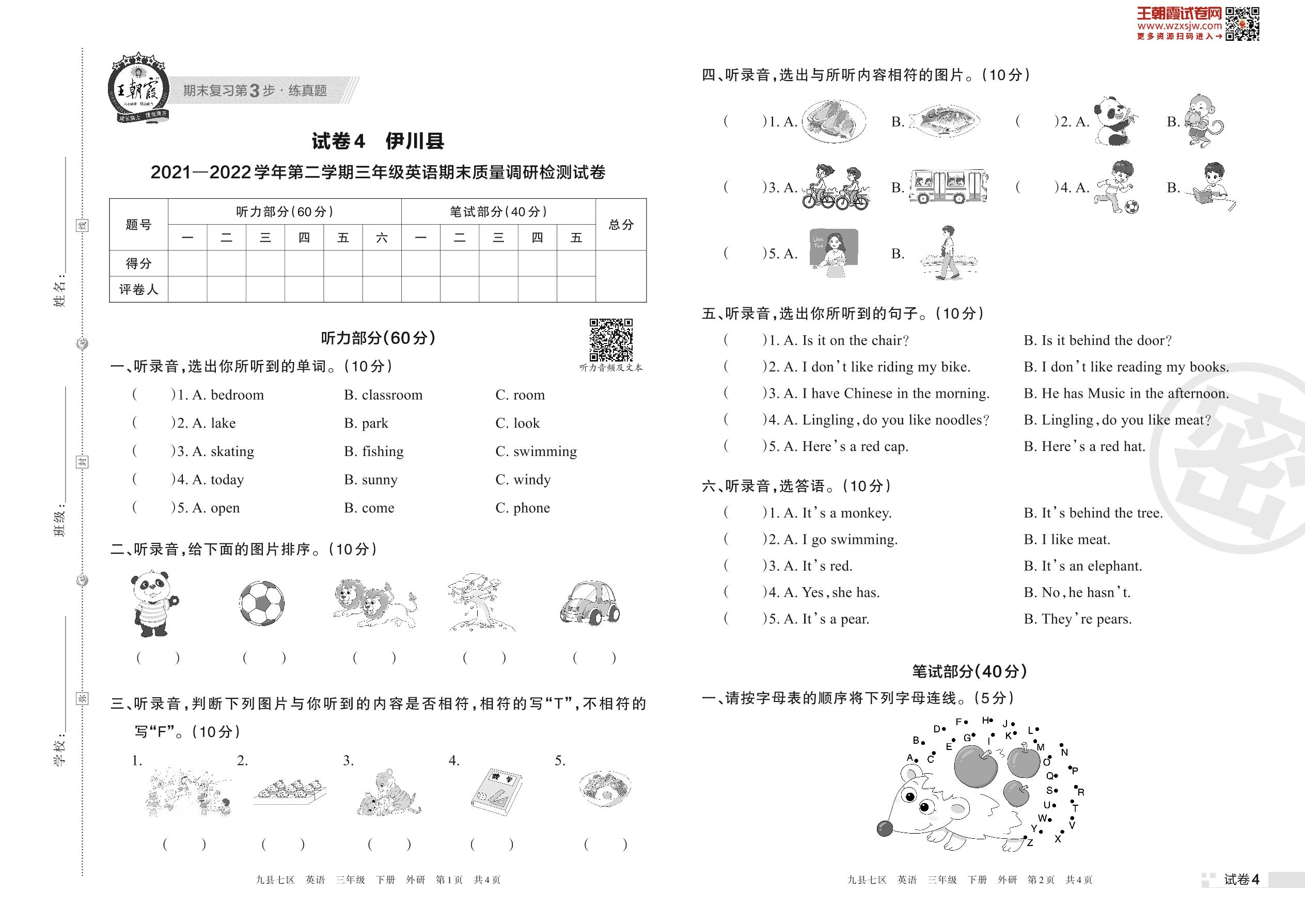 伊川县2021—2022学年第二学期三年级英语期末质量调研检测试卷(外研版)【4】