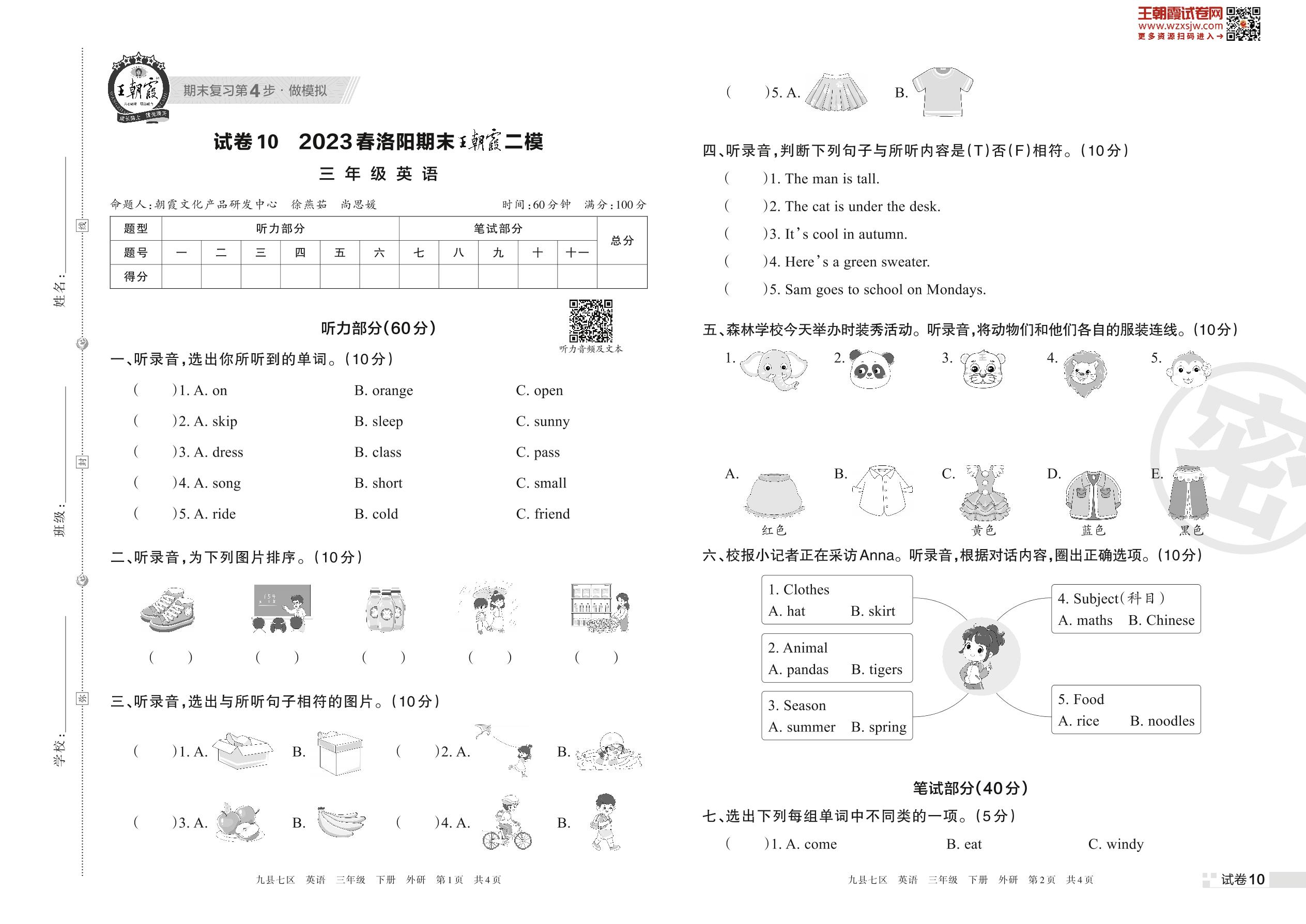 王朝霞期末模拟卷三年级下册英语(外研版)_R230425141728508【10】