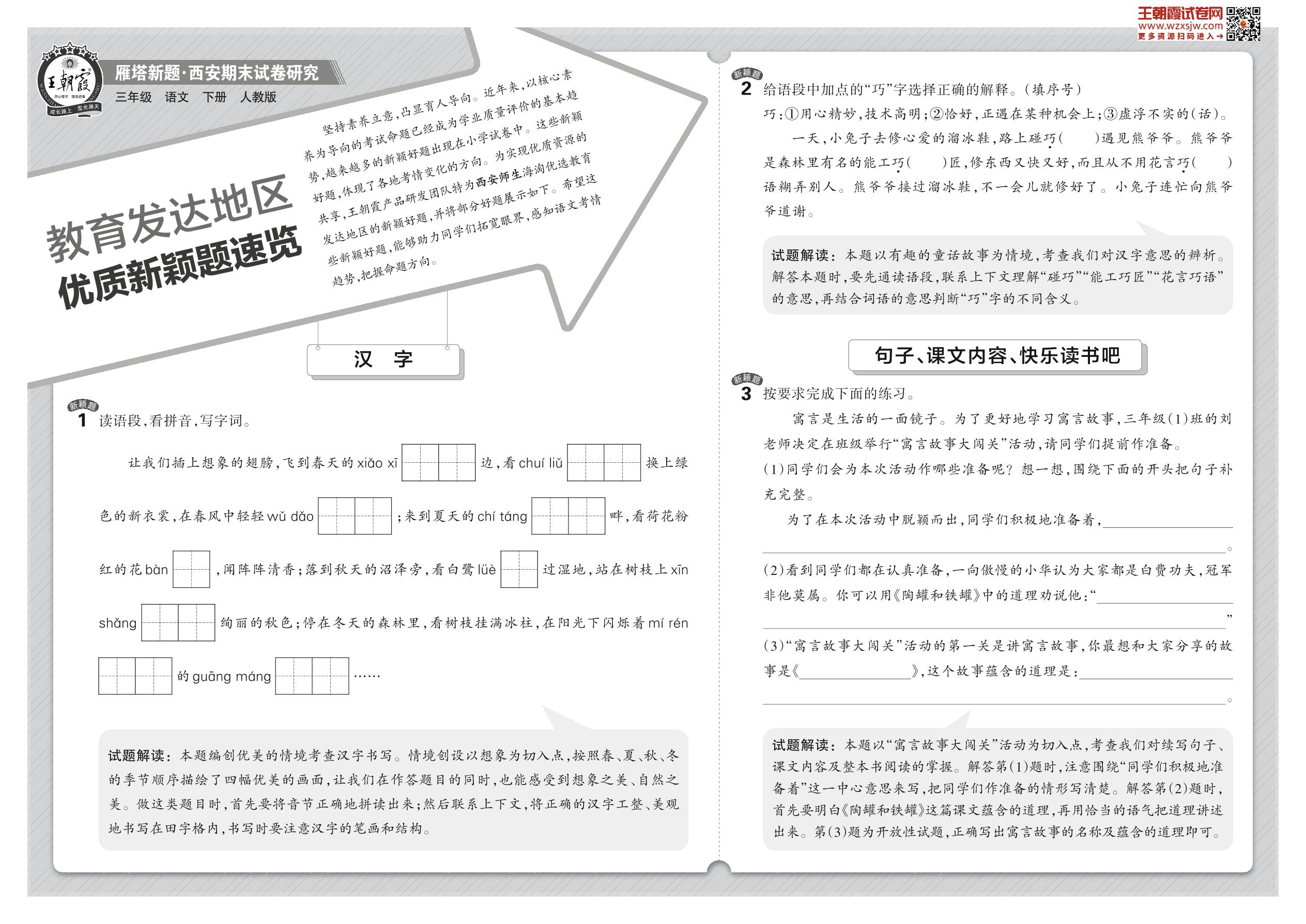 教育发达地区优质新颖题速览三年级下册语文(人教版)_R230425141730686